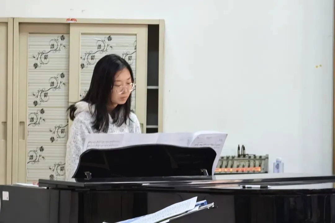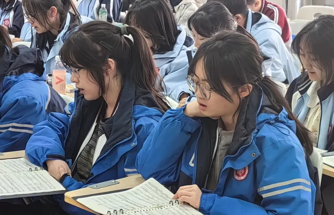 中午时间紧,但同学们都能准时出席,认真排练。刘海微老师从基础发声、气息练习,到声部配合技巧指导,耐心又细致。合唱团全体团员专注聆听、练习,声音饱满,情感真切,美妙的和谐在排练室里荡漾,同学们在午休的时光里感受歌唱的魅力和艺术的滋养。