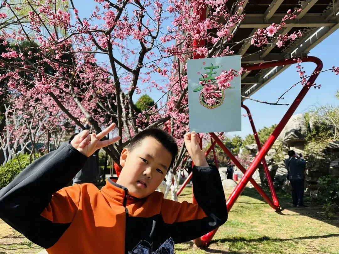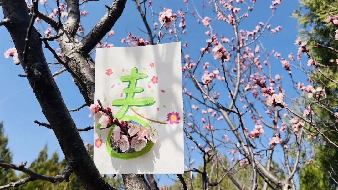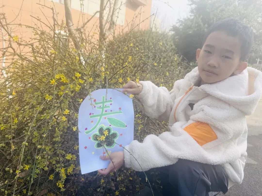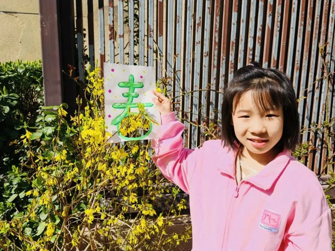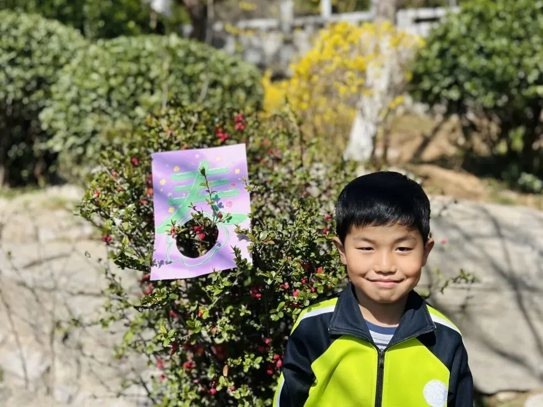 大家带着亲手制作的春日卡片走进户外,让枝头的粉桃、嫩绿的新芽透过“春”字框,定格下独属于自己的春分瞬间。同学们与春光合影,让自然之美与童真笑脸一同留存,成为这个春天最温柔的纪念。