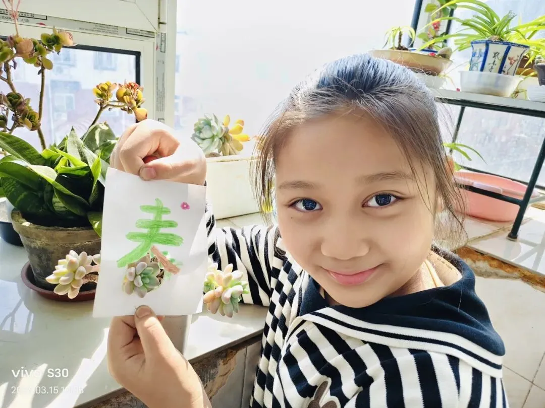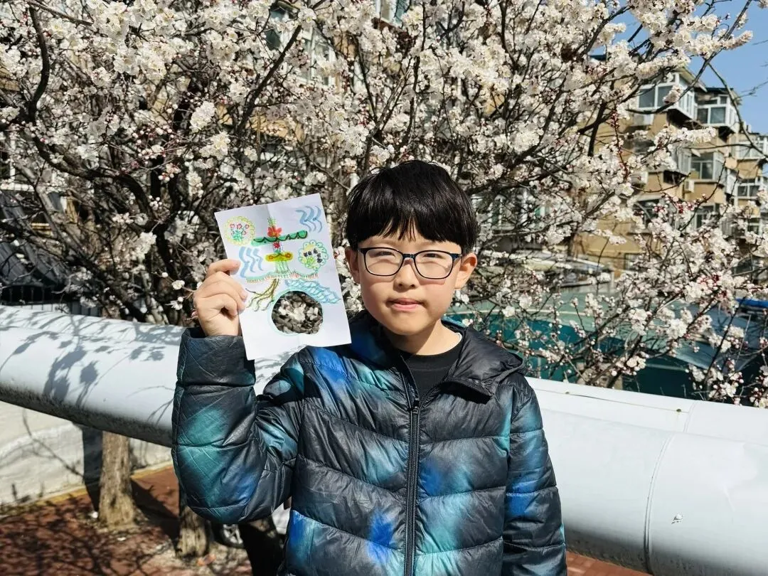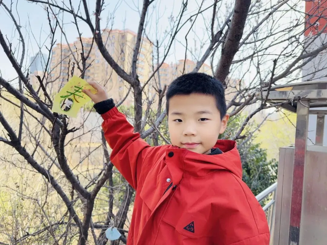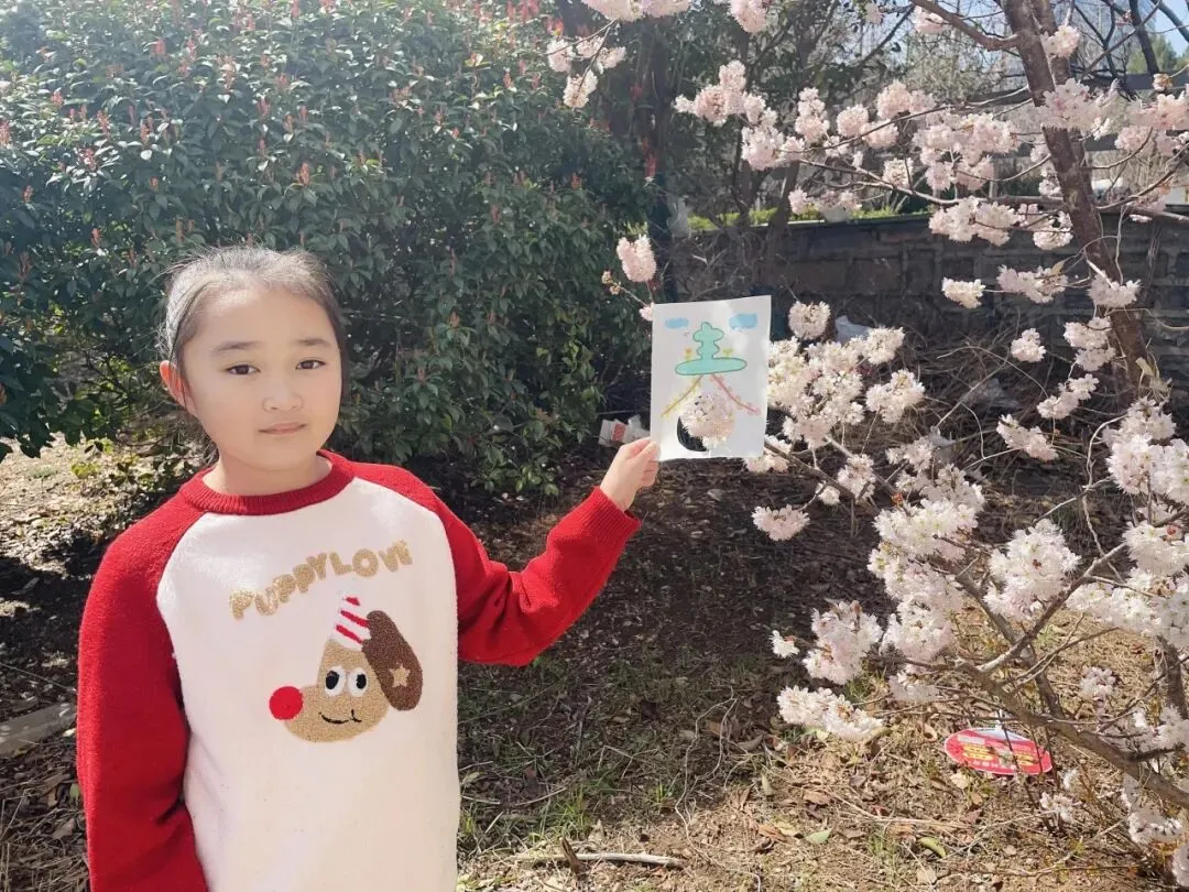 大家带着亲手制作的春日卡片走进户外,让枝头的粉桃、嫩绿的新芽透过“春”字框,定格下独属于自己的春分瞬间。同学们与春光合影,让自然之美与童真笑脸一同留存,成为这个春天最温柔的纪念。