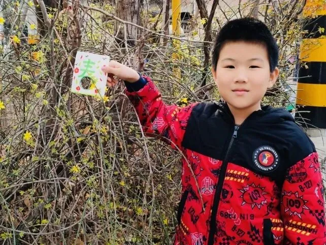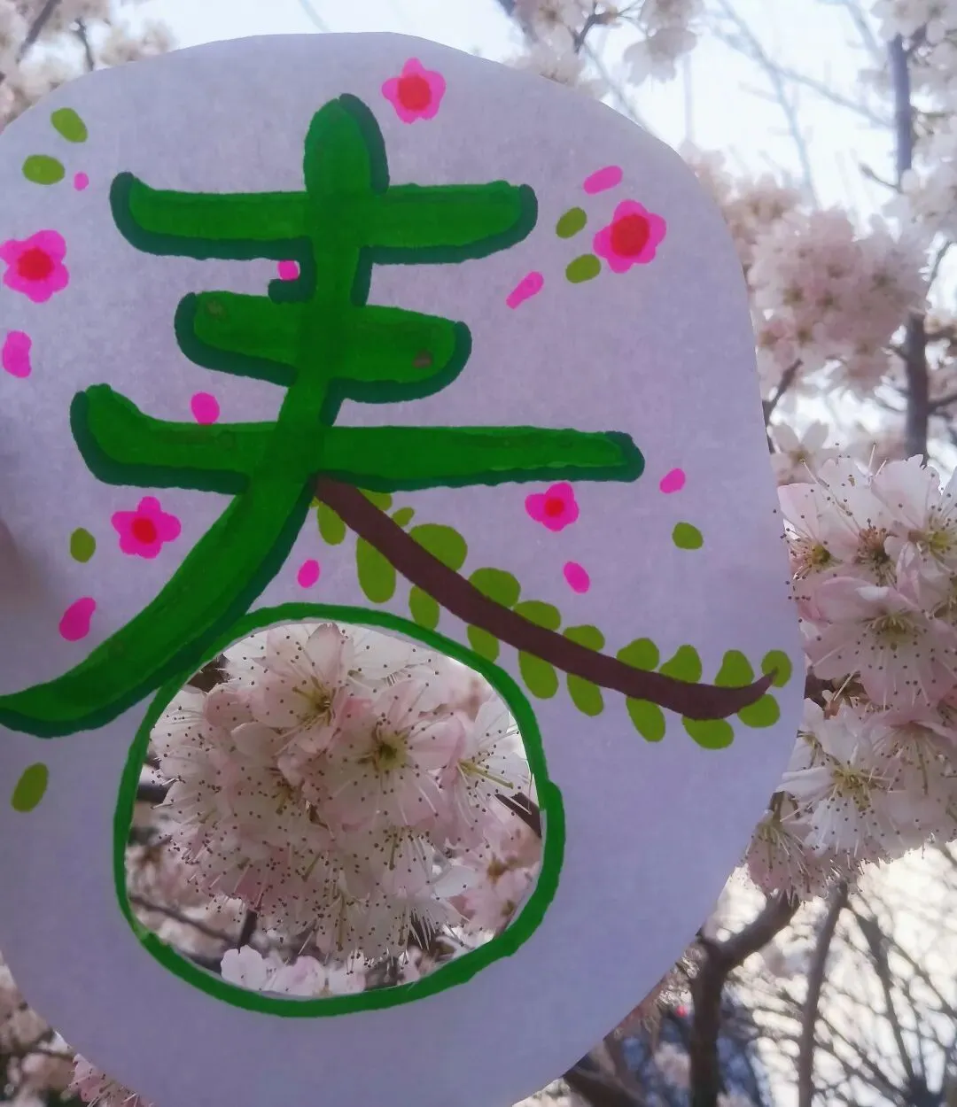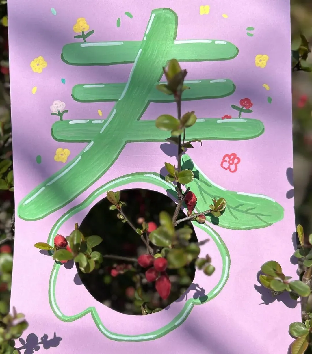 一张镂空的“春”字卡片,是孩子们与春天的专属取景框。