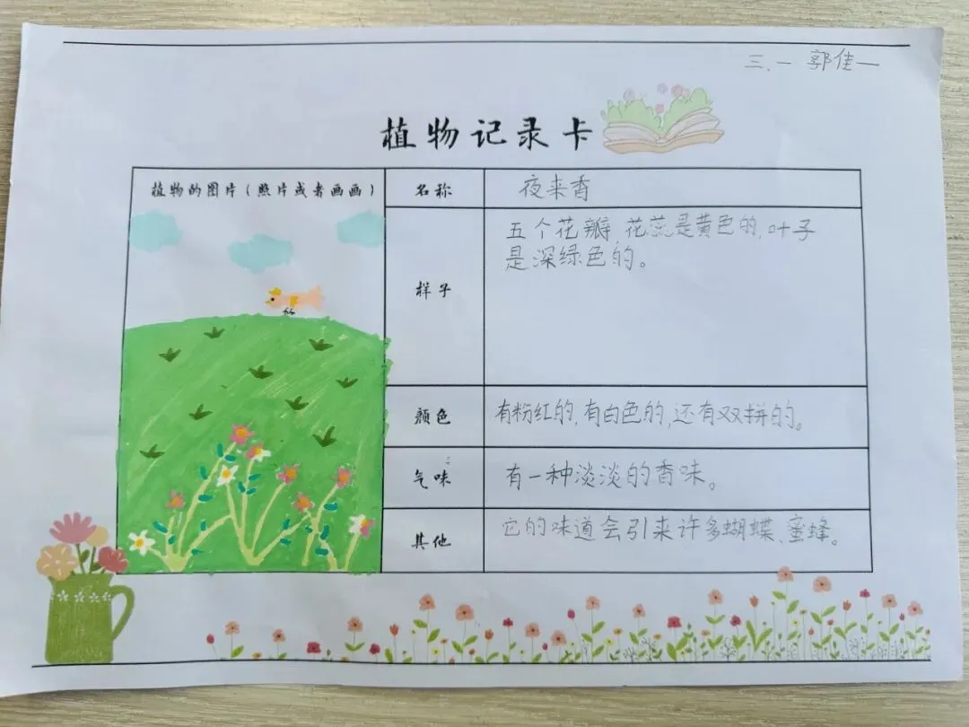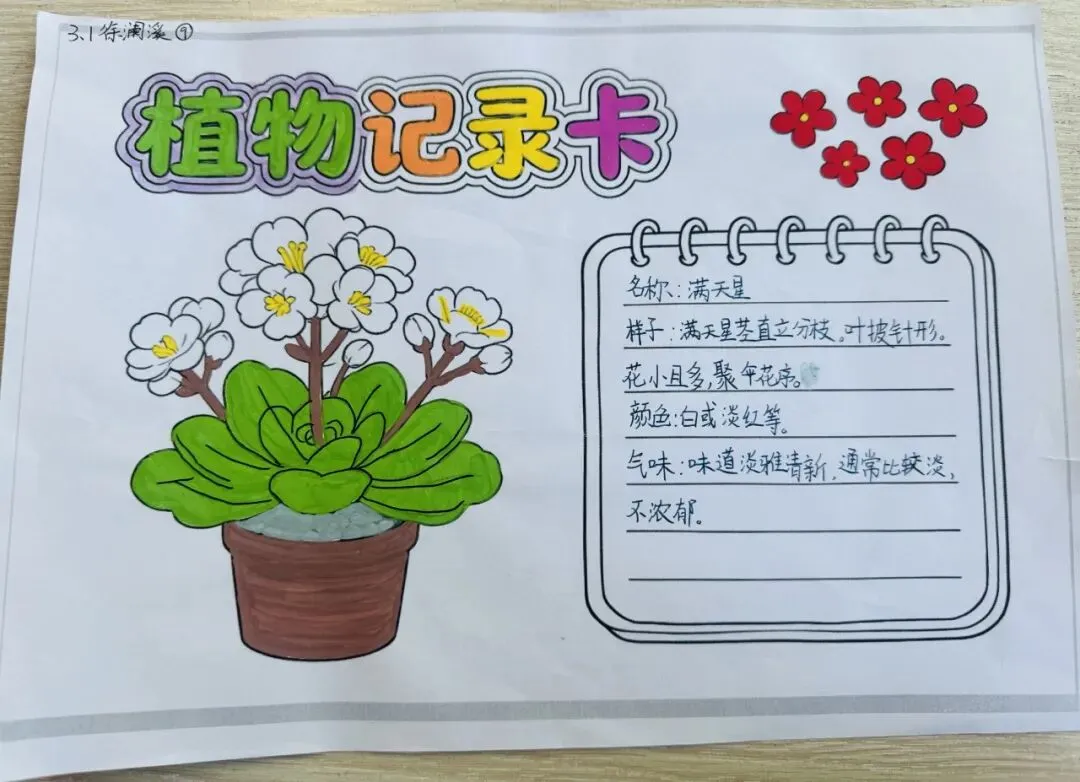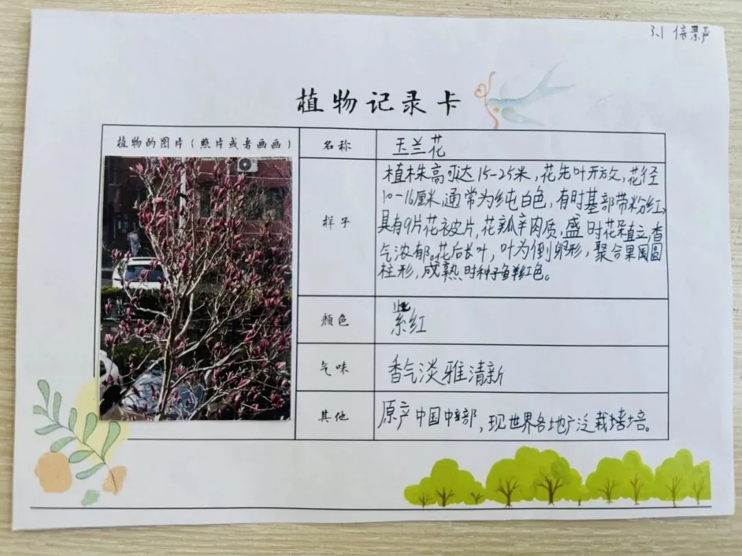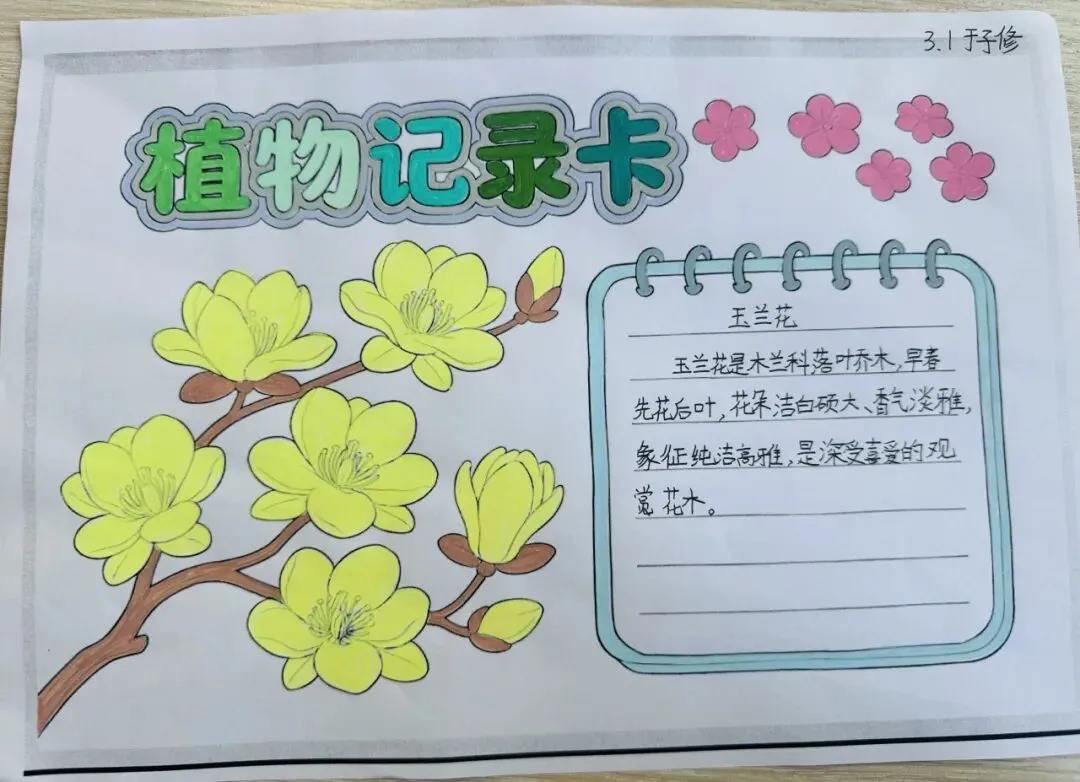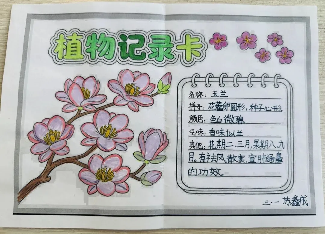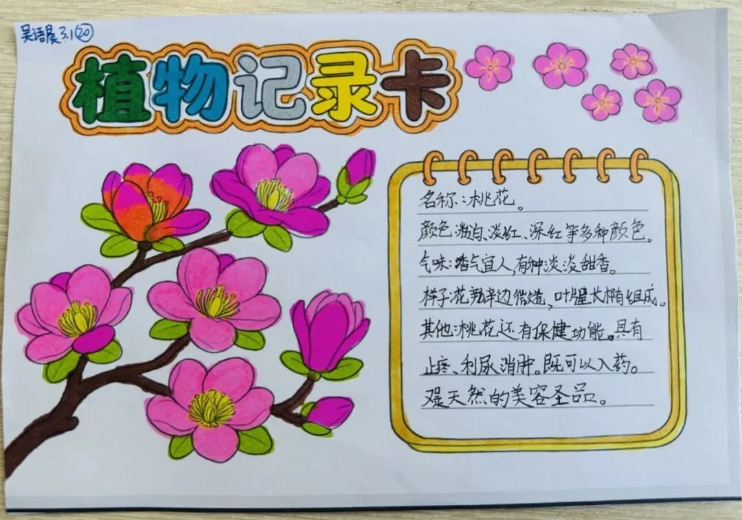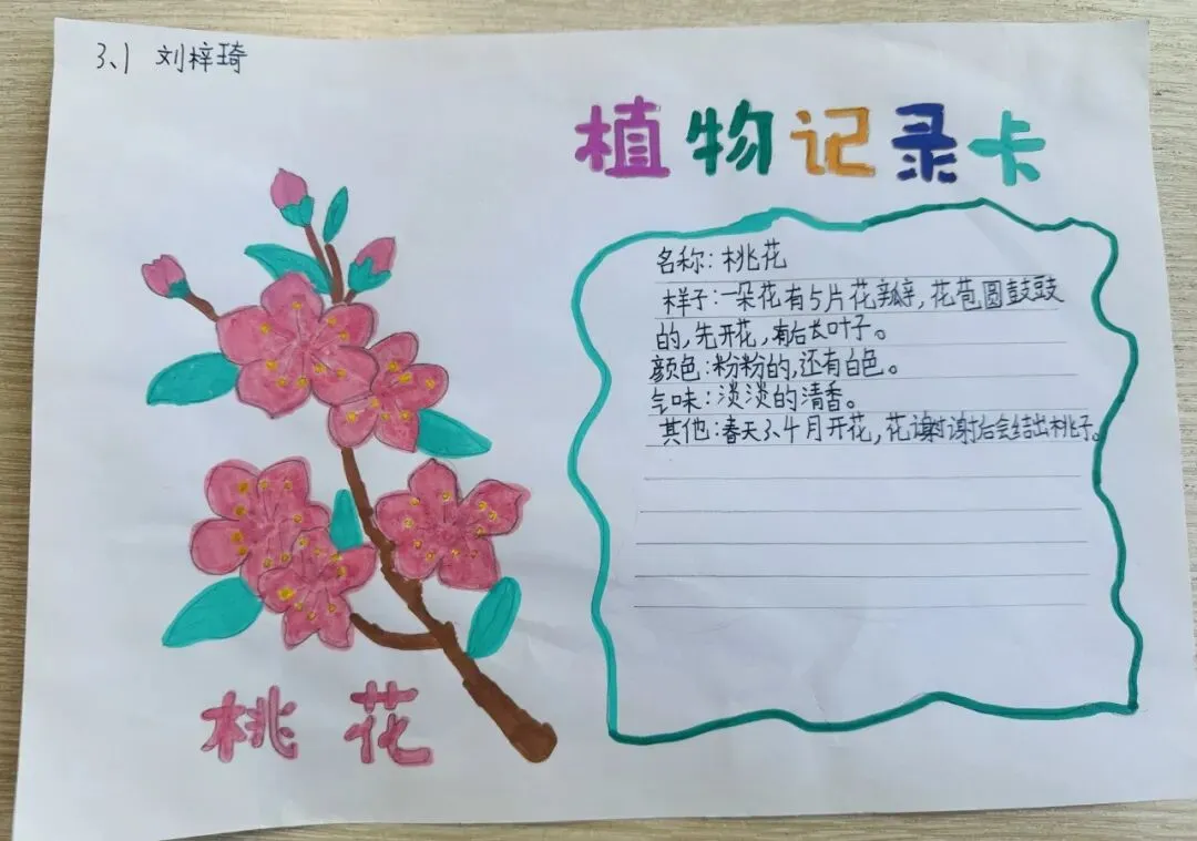 以笔为眼,记录春日生灵的模样。结合刚学完的习作内容,孩子们仔细观察身边的春日植物——或是含苞的桃花,或是垂丝的柳树,或是破土的小草。他们用文字描摹植物的形态,用画笔晕染色彩与气息,在观察与记录中,感受春分时节生命的蓬勃力量,积累珍贵的写作素材。
