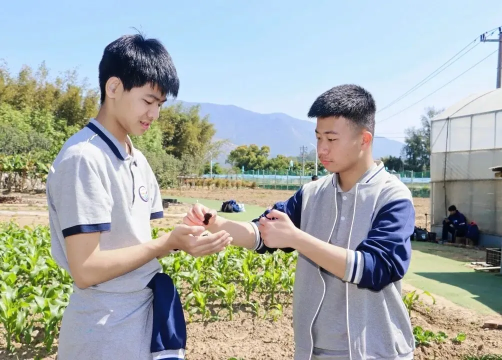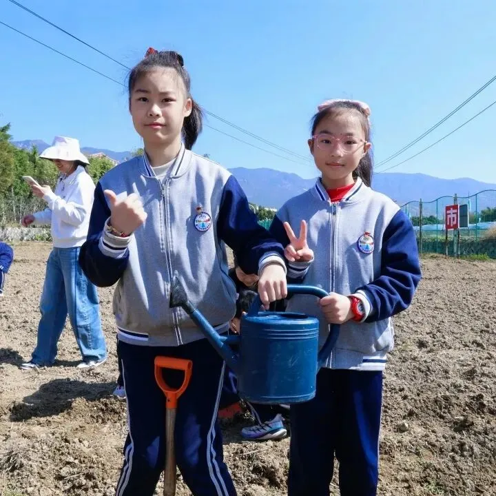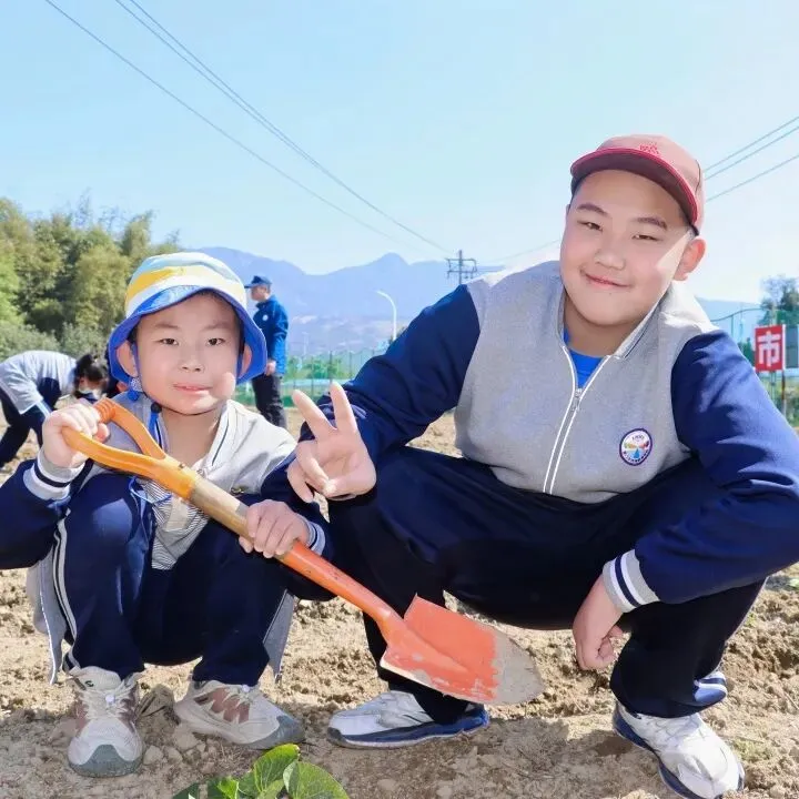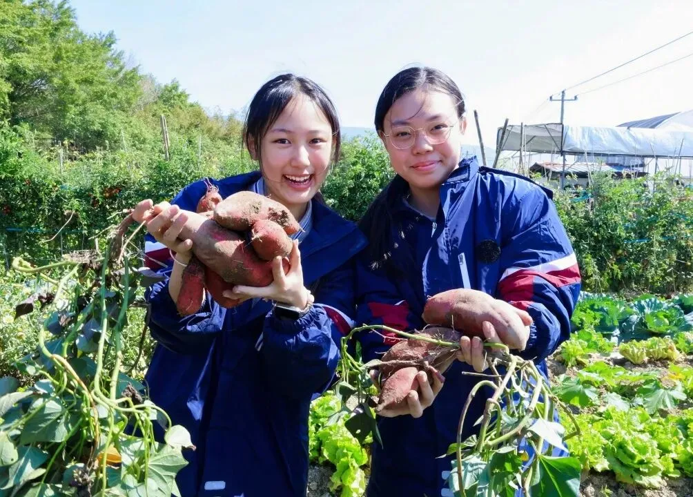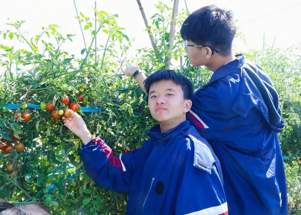 在田间课堂,同学们化身小小农夫,挥起锄头在田间地垄种下红薯苗,亲手耕耘、播种希望。大家穿梭于绿意间,摘下鲜红的无农药番茄,用清水一冲便吃得津津有味;