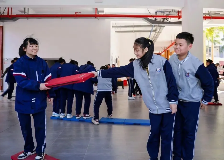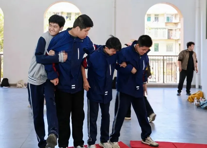 “同舟共济” 团队拓展现场,一块小小的防滑垫便是大家的 “同心舟”。同学们紧紧相拥、彼此支撑,有人高声喊着“左右左”的整齐口令,有人牢牢扶住同伴,大家重心一致、步调协同,呐喊声、加油声此起彼伏。