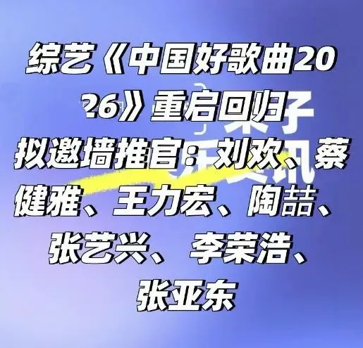 这份阵容既包含乐坛前辈的沉淀与引领,也有新生代的活力与创新,仿佛预示着《中国好歌曲2026》将成为一场跨越代际的音乐对话,让不同风格的创作在舞台上碰撞出耀眼火花。
