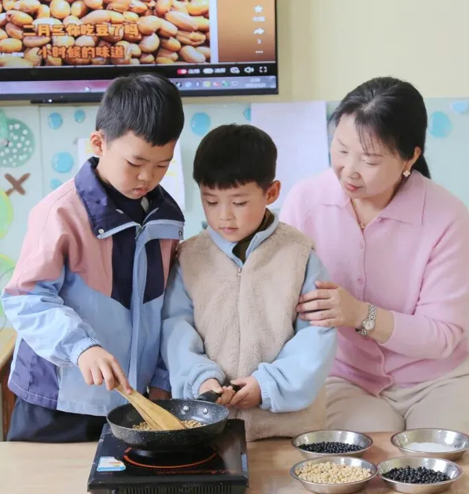 “二月二 炒豆豆,逗龙引凤好兆头”。大二班邀请家长走进幼儿园和孩子们一起炒糖豆。幼儿在欢声笑语中体验了舌尖上的龙抬头——炒糖豆之旅。