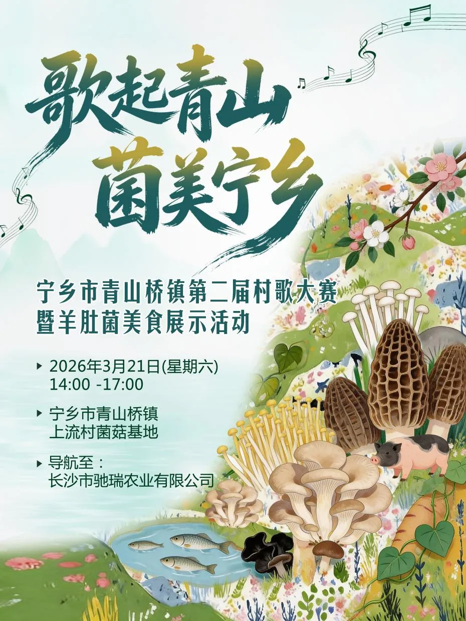 活动地点:宁乡市青山桥镇上流村菌菇基地(导航搜索“长沙市驰瑞农业有限公司”即可)