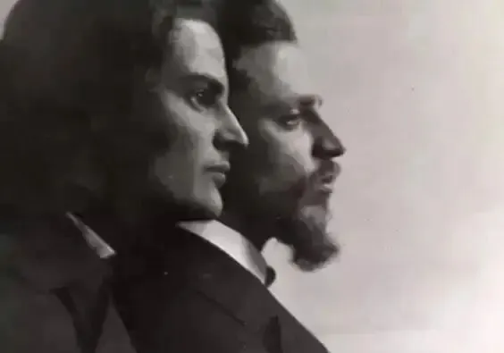 里尔克和莎乐美与俄国诗人SD德罗任合影,1900年