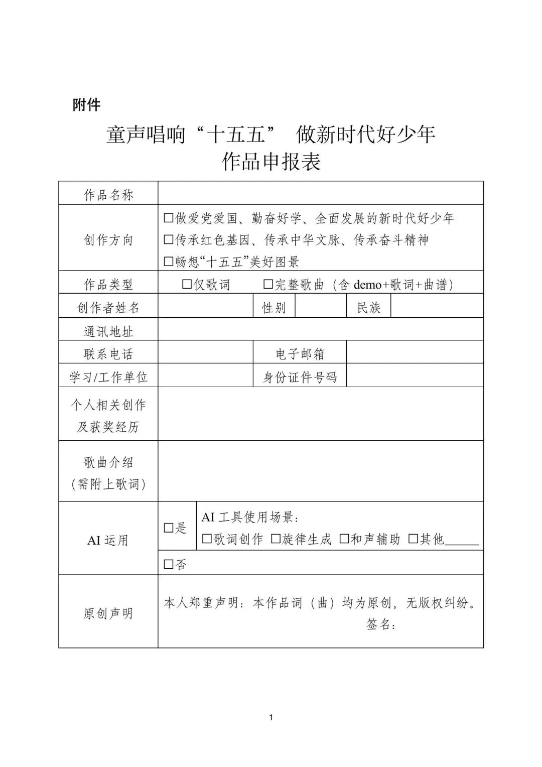 5.AI运用。作品如使用AI工具辅助或用AI辅助创作的,需在申报材料中明确标注,并简要说明AI工具的使用场景(如歌词创作、旋律生成、和声辅助等)。