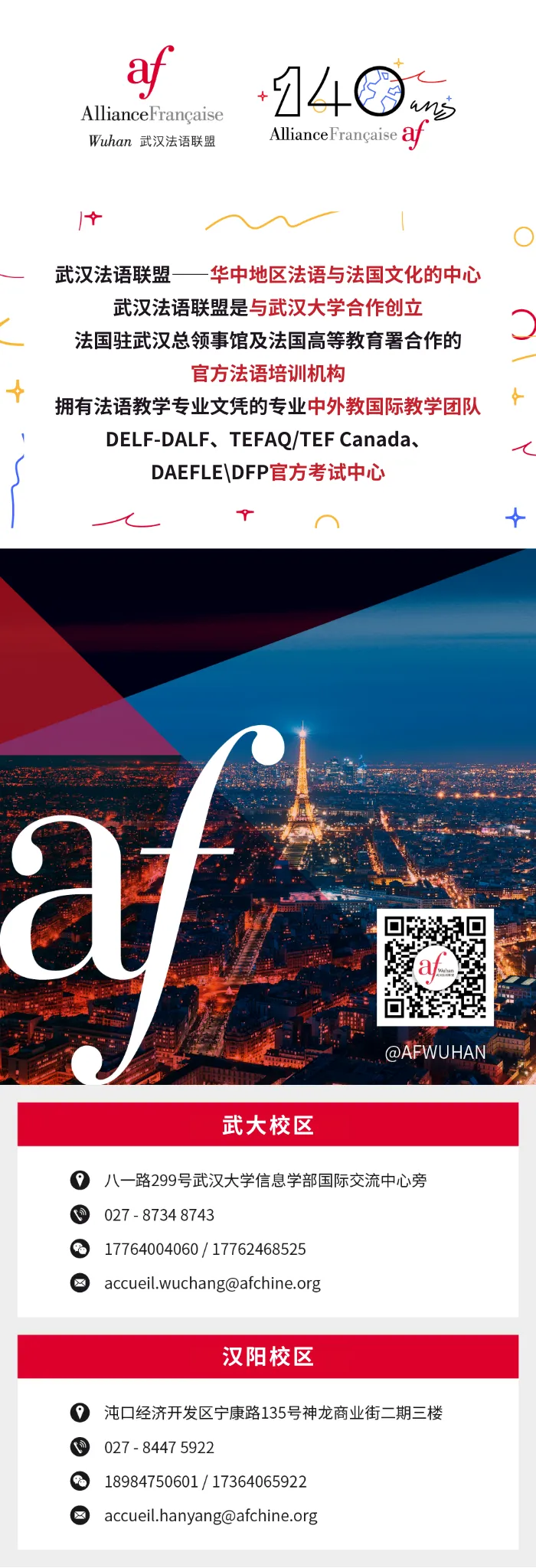 Vous pouvez nous suivre en live-streaming à 14h le 28 mars sur plusieurs réseaux sociaux — WeChat « Alliance Française de Shanghai », Weibo « Faguo Wenhua » ; pour cela, inscrivez-vous en scannant les QR codes ci-dessous.