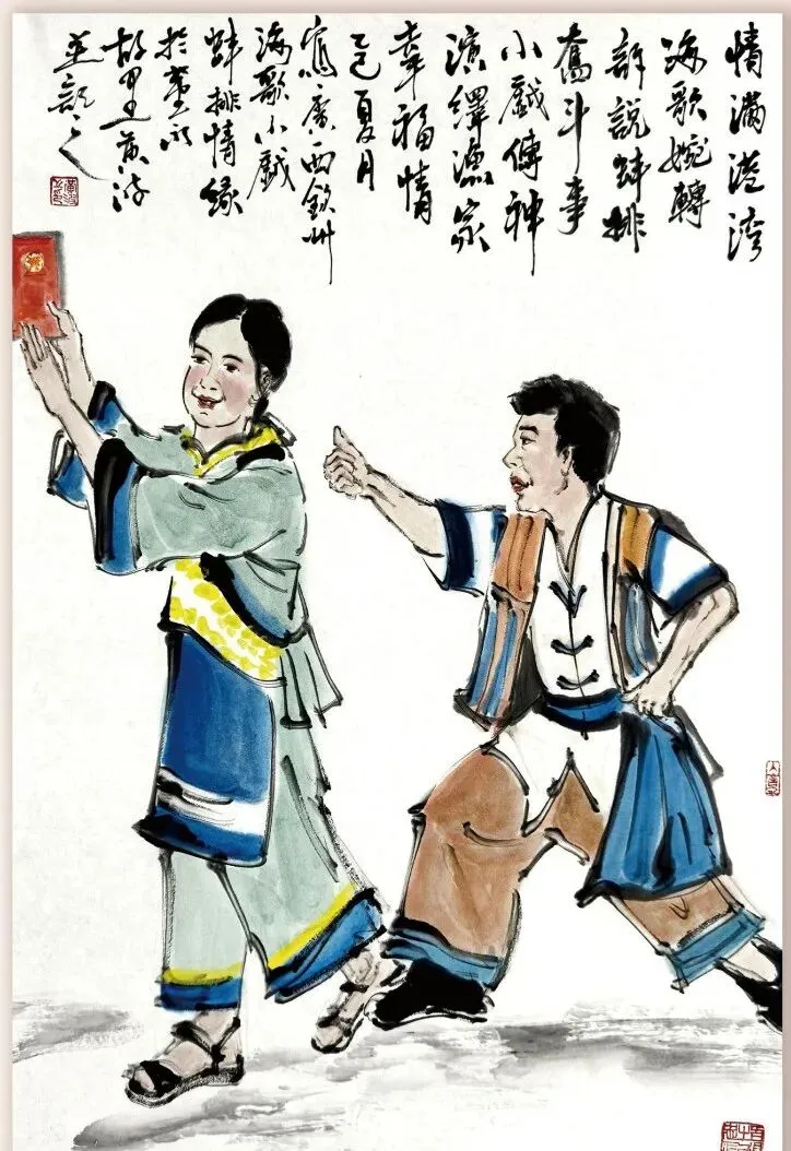 题曰:海歌婉转,诉说蚌排奋斗事;小戏传神,演绎渔家幸福情。