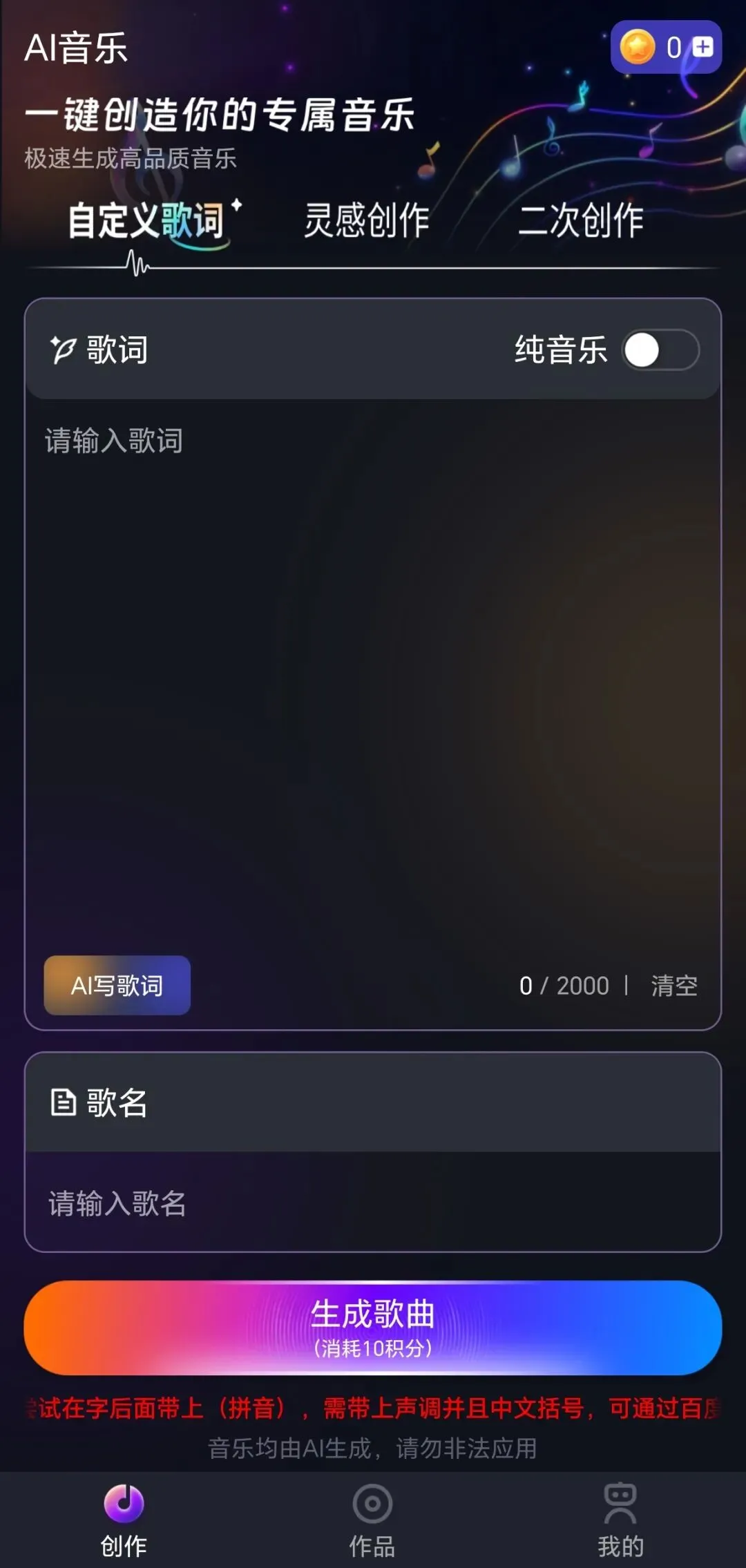 我本来想再创作几首自己喜欢的歌,结果发现没做几首歌积分就消耗完了,如果想继续就要购买积分。