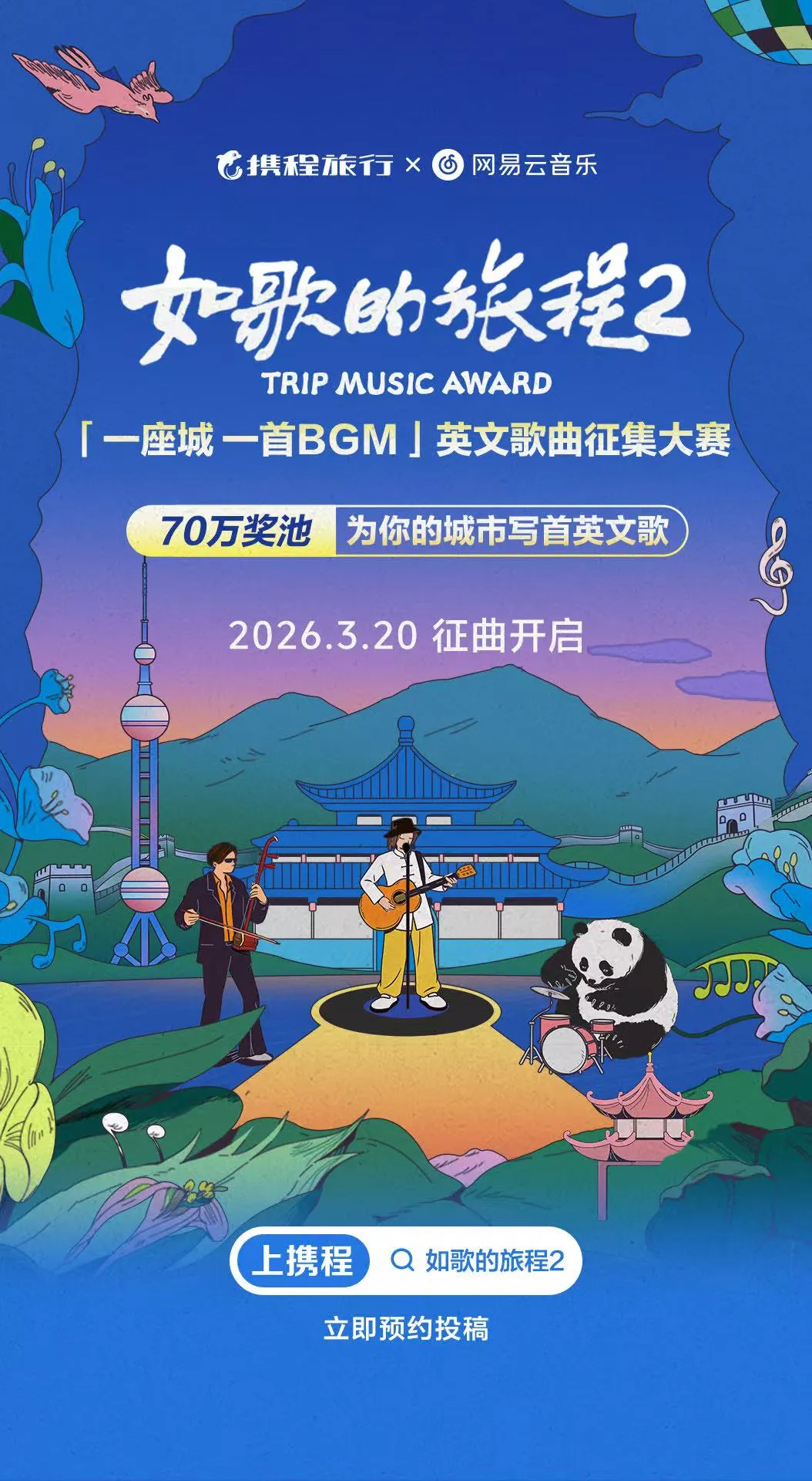 3月10日,携程联合网易云音乐正式官宣,备受期待的《如歌的旅程2》重磅回归,以旋律为桥,让中国城市之美跨越山海、走向世界。