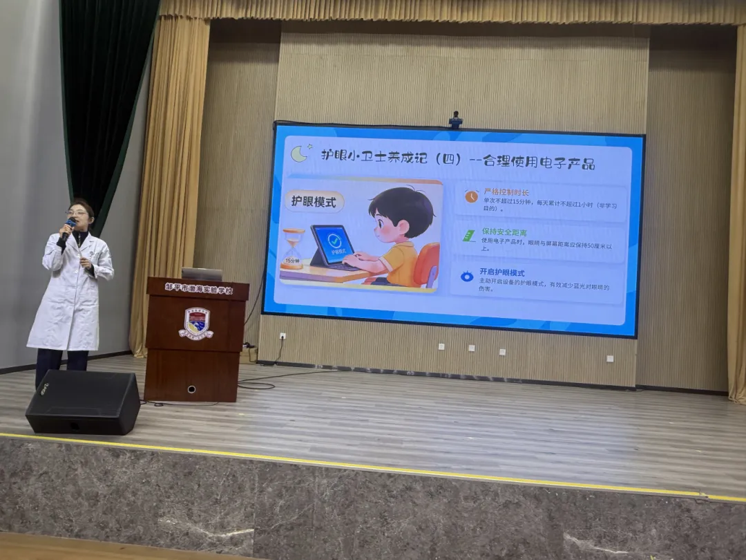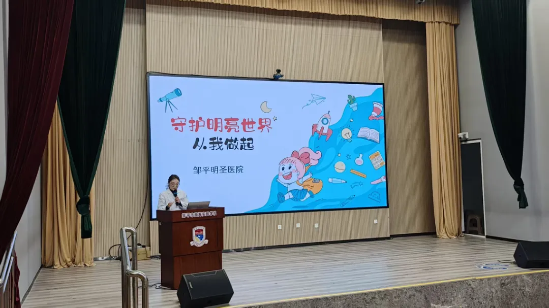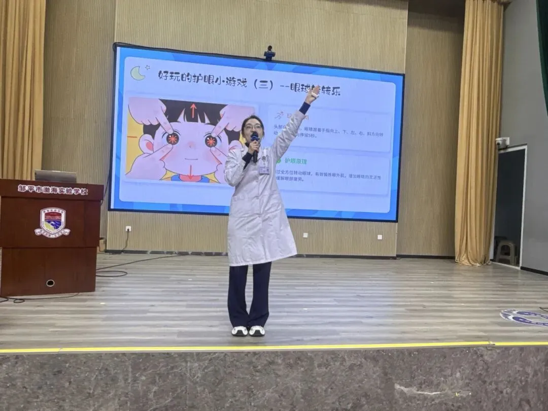为引导孩子们树立科学护眼意识,养成良好用眼习惯,邹平市渤海实验学校特邀专业眼科医生走进校园,开展一场生动又实用的护眼科普专题讲座,用一首歌、一堂课、一套操,为孩子们的视力健康保驾护航。