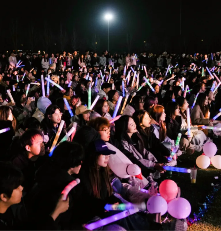 带着荧光棒错落坐在柔软的草坪上