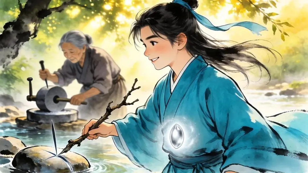 老妇人依旧在磨着那根铁杵,只是此刻再看,那缓慢重复的动作里,似乎蕴含着某种和山川溪流同样频率的韵律。
