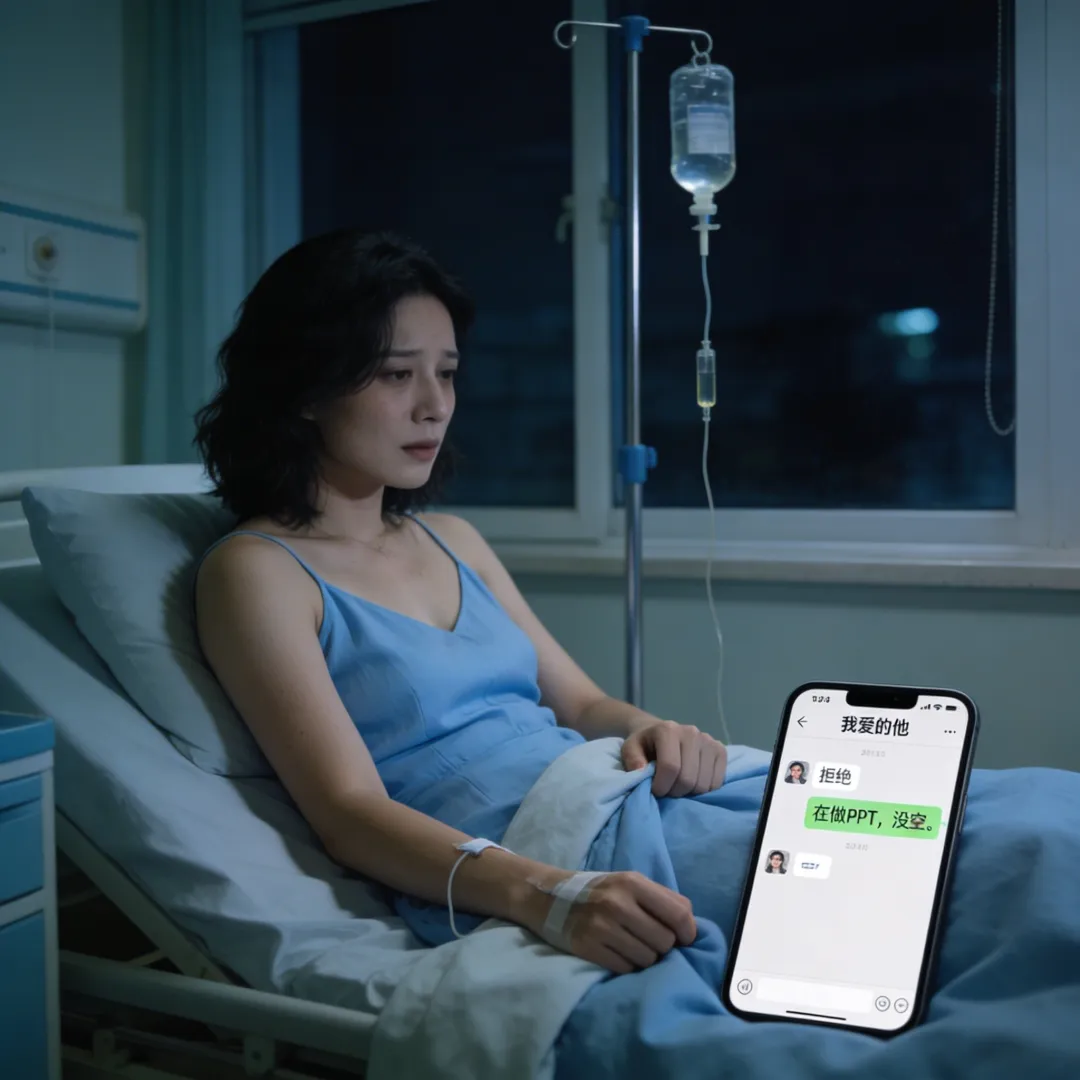 有一次,我生病发烧了,我说我很想他,问他能不能过来陪陪我,我一个人在医院输液很怕。他说他没空,在做第二天要用的PPT。他离我其实不远,开车个把小时吧!连最基本的关心都没有一句,那一次我的心是真的冰到发抖。本来想打电话给爱我的那个TA,但最终还是没有勇气打,最后还是自己扛下了所有。