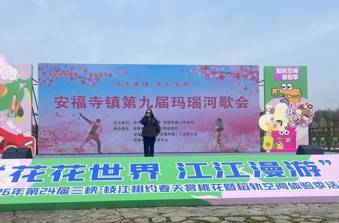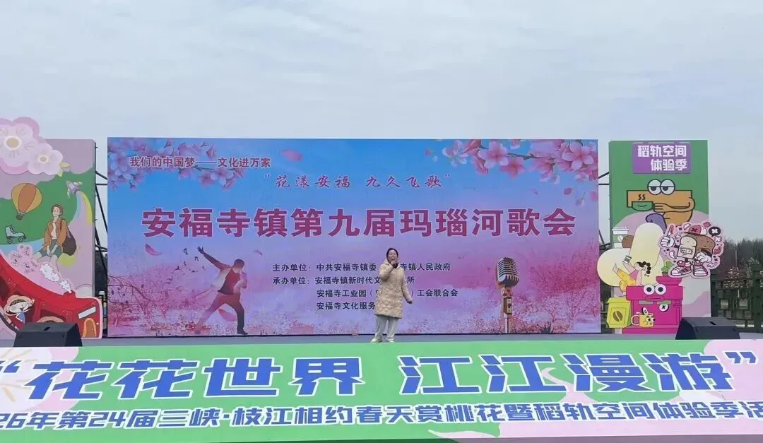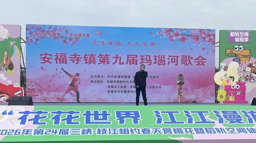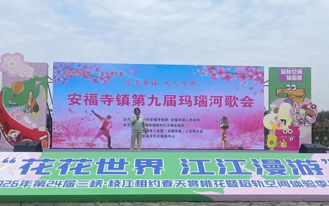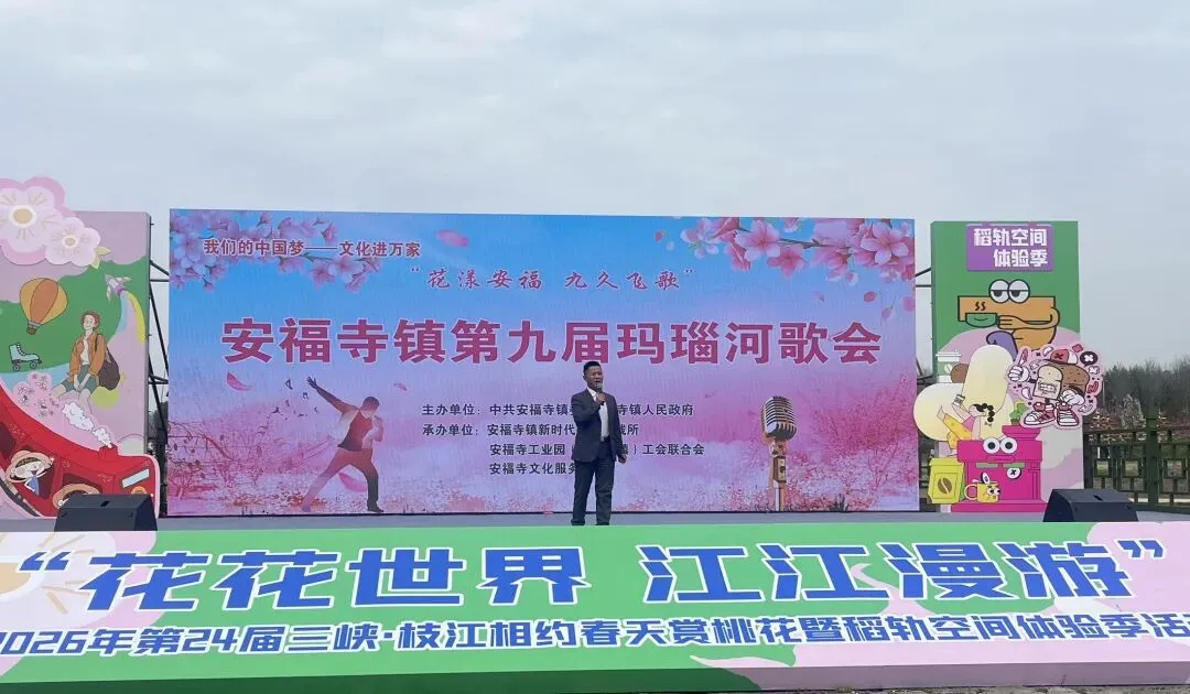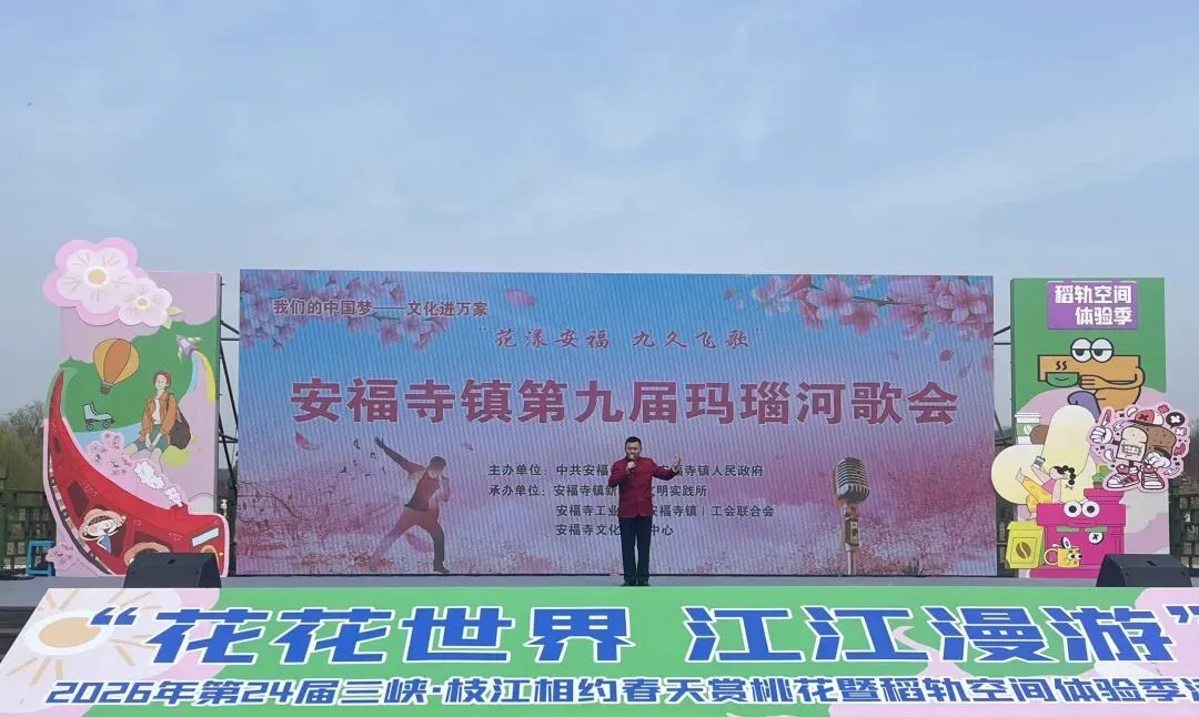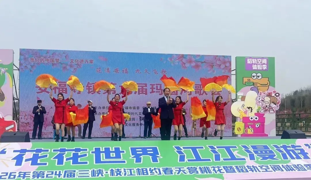 花花世界,江江漫游;春回枝江,桃花灼灼。3月21日,正值2026年第24届三峡·枝江相约春天赏桃花活动暨稻轨空间体验季浪漫启幕之际,安福寺镇第九届玛瑙河歌会在东方年华田园综合体隆重举行。这场以大地为舞台、以乡音为旋律的文化盛宴,用最接地气的表演唱出了百姓的心声,秀出了家乡的风采。