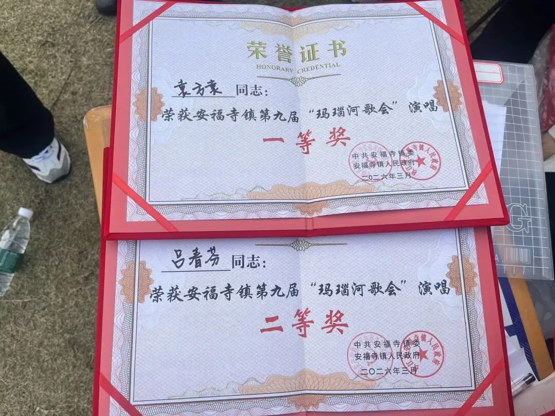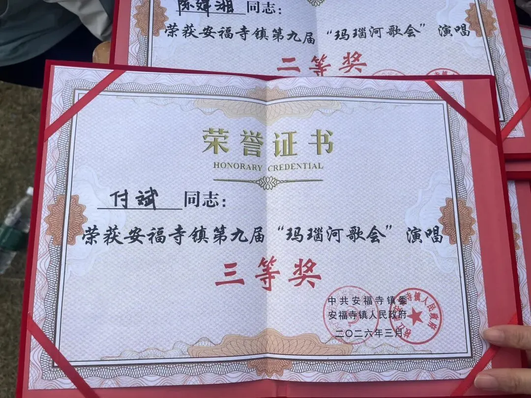 本次参赛的22名选手来自安福寺镇各村、枝江市其他乡镇以及有关单位。他们之中,既有“照孙办”爱好唱歌的歌者,也有朝气蓬勃的少年儿童,更有风华正茂的俊男靓女。他们虽来自乡村,没有受过专业的训练,甚至有些人的嗓音还带着泥土的粗粝,却在舞台上把心底的热爱,唱给桃花,唱给玛瑙河,唱给春天,唱给这片土地,唱给现场的每一位观众。