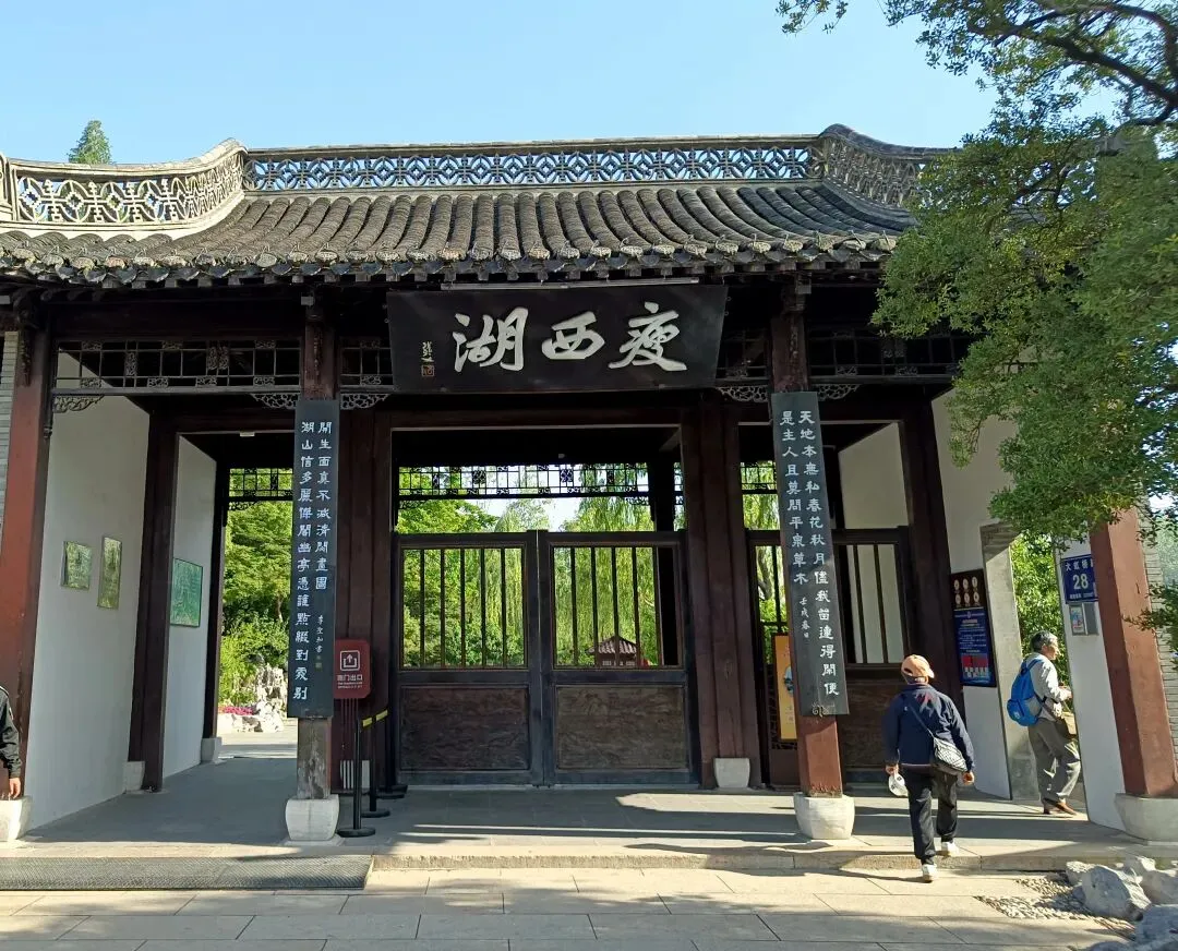 扬州的西湖叫瘦西湖,那么杭州西湖显然是胖西湖了。这两座西湖就不做比较了。不过单就园林之美来说,以我走天下的履历来看,瘦西湖在全国范围内,至少名列三甲,应该是实事求是的说法。不排除我沾了好天气的光。如果昨天在扬沙阴雨天气中游览瘦西湖,无疑是另外一种感受。今天的瘦西湖,犹如打开美颜相机,各项指标分值翻番。具体景物不多描绘了,有图有真相。略加说明就行。
