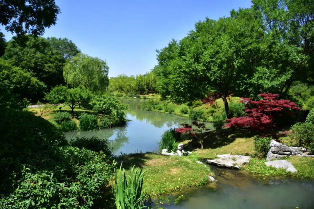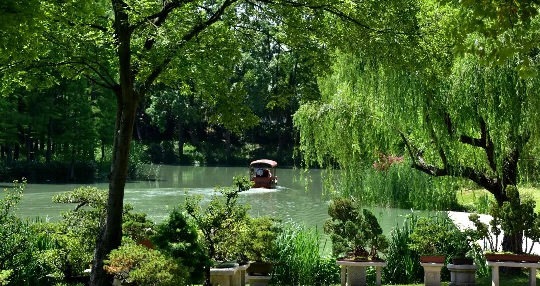 其实最恰当的比喻,不妨说以扬州城为基础,瘦西湖就是一座超大超美的大盆景。 春风拂过,垂柳依依,拂动湖面泛起层层涟漪;夏日荷风送香,荷叶田田,映得湖水碧绿如翡翠;秋来层林尽染,黄叶飘落,添几分诗意阑珊;冬雪覆盖,银装素裹,尽显素雅空灵。乘一叶画舫,泛舟湖上,听船娘的吴侬软语,看两岸亭台楼阁错落有致,仿佛穿越回千年之前,置身于康乾盛世的江南盛景。瘦西湖的旖旎,是扬州的柔情似水,是江南的诗意缱绻,让每一个游人都沉醉其中,不愿离去,只想沉醉在这湖光山色里,独享这份悠然与惬意。