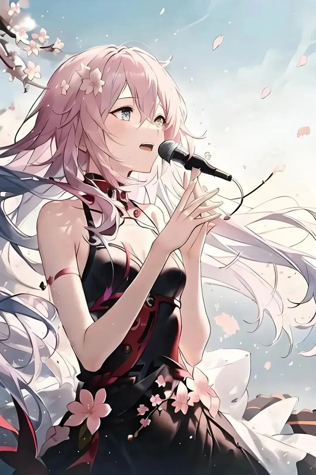 她的歌声没有激昂的旋律,却有着穿透灵魂的力量,能安抚人心,也能唤醒希望。在壁纸里,我们总能看见她轻闭双眼、抬手歌唱的模样,粉色发丝随风飘动,光影落在她的侧脸,连空气都变得安静又温柔。