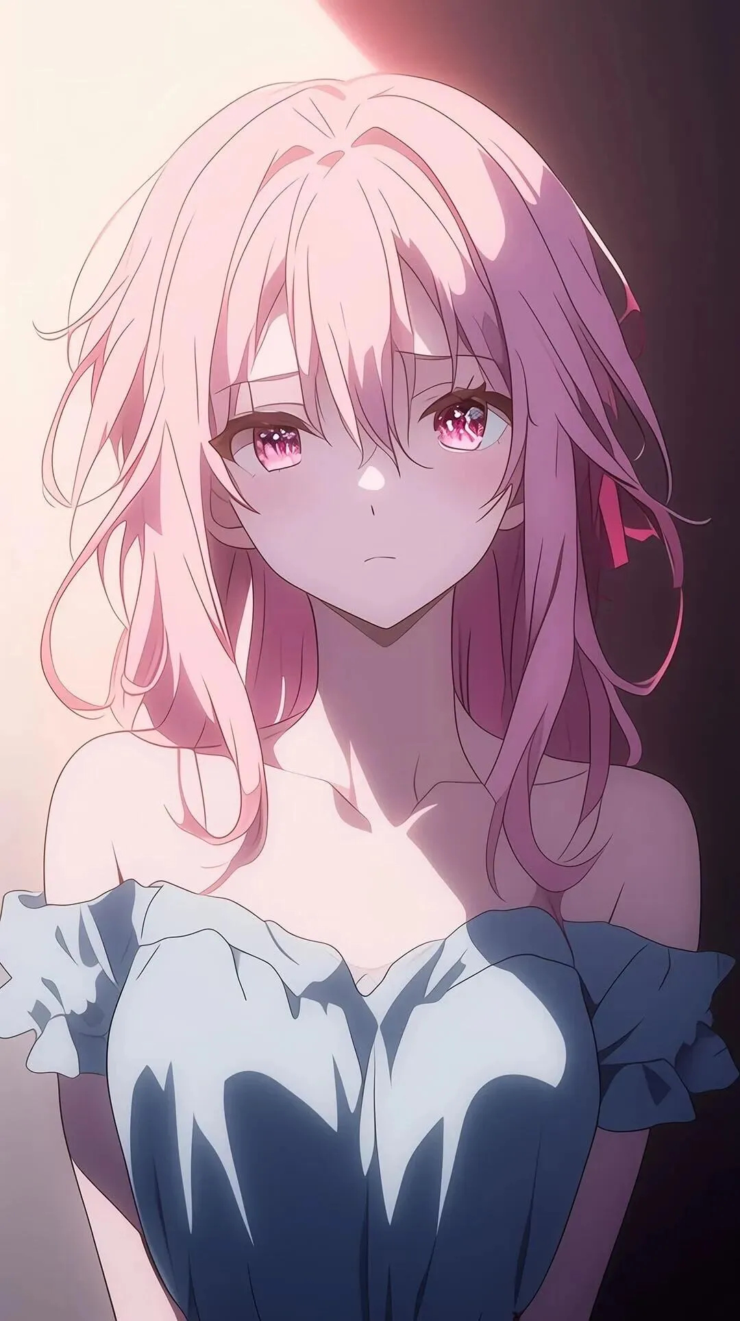 壁纸里的她,粉色短发利落又柔软,发梢微微翘起,像春日里最温柔的风。她的眼眸是澄澈的粉紫色,有时带着懵懂与天真,像不谙世事的人偶;有时又藏着坚定与决绝,仿佛能看穿世间所有的黑暗。