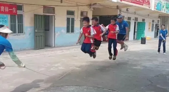 另一边,数字跳绳游戏也在火热地进行。开始前,大家紧张得站在绳子的一旁,随着一声令下,师生双脚迅速跳起。