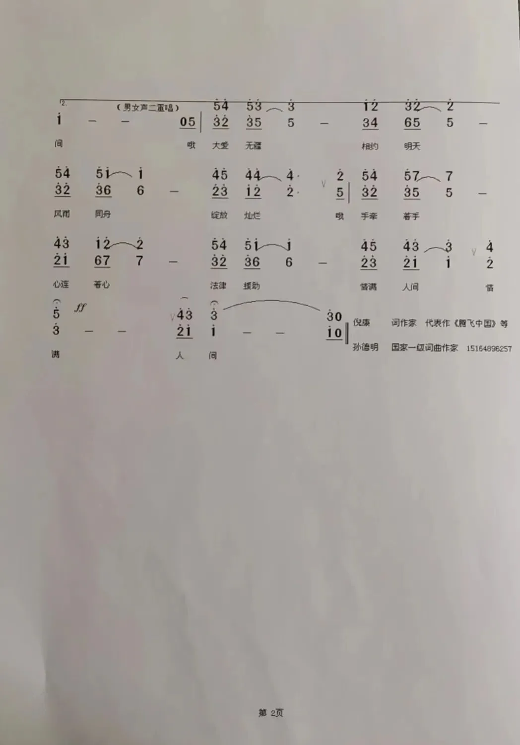 作词:倪康(贵州省司法厅领导/著名词作家)