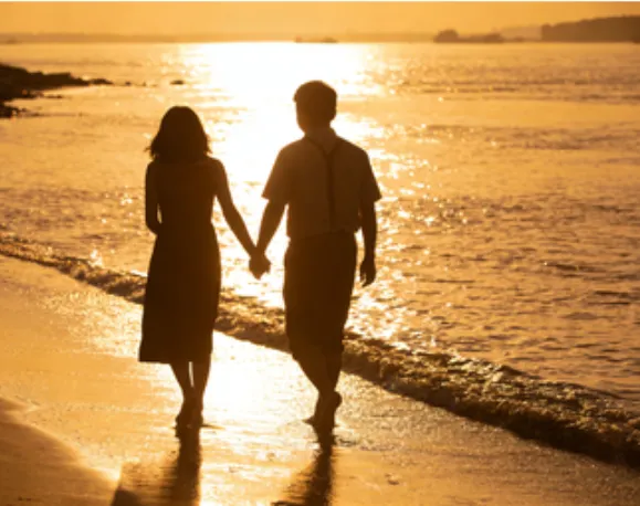 幸福的人十指相扣在身旁