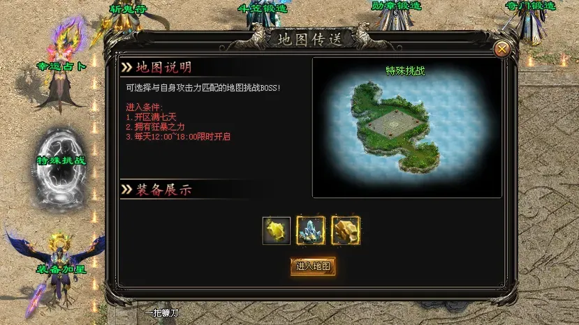 2.激活狂暴(小幅提升自身属性、主城安全区右侧);