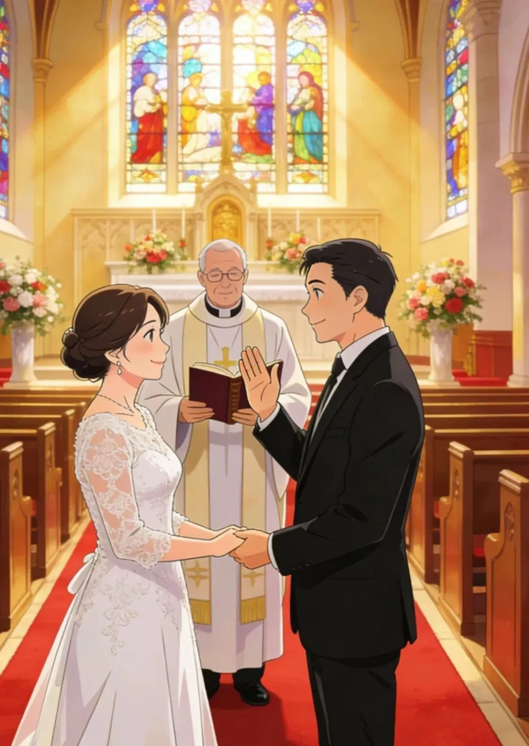 我们真的走进了当年幻想的教堂,穿上了当年梦想中的礼服与西装。当神父问出那句誓言,我看着你,眼泪突然就落了下来。