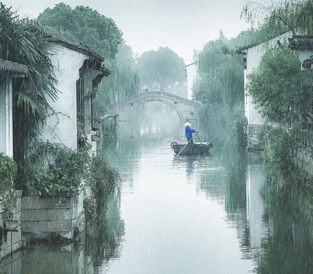 旋律一响起,便和眼前的景致融为一体。雨落屋檐,水声潺潺,歌声婉转缠绵,把江南的湿、软、愁、美,全都现了出来。