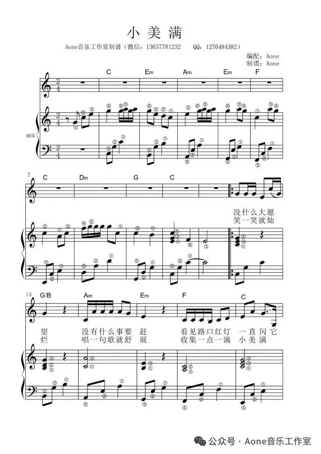 成人流行歌曲钢琴弹唱简谱版(一)