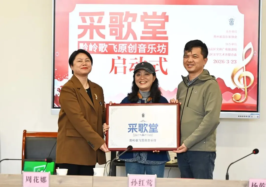 3月23日下午,由贵州省音协主办,贵阳市白云区文旅局、贵阳市白云区文联协办的“采歌堂——‘黔岭歌飞’原创音乐坊”启动仪式在贵阳市白云区文化馆举行。省文联副主席(挂职)、省音协副主席孙红莺出席并讲话,白云区委常委、区委组织部长周花娜致欢迎辞,活动由省音协驻会副主席杨乾江主持。省音协、贵阳市音协相关领导及嘉宾,白云区委宣传部、区文旅局、区文联等相关负责同志,全省词曲创作者及新闻媒体记者近30人参加活动。