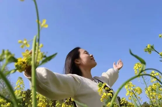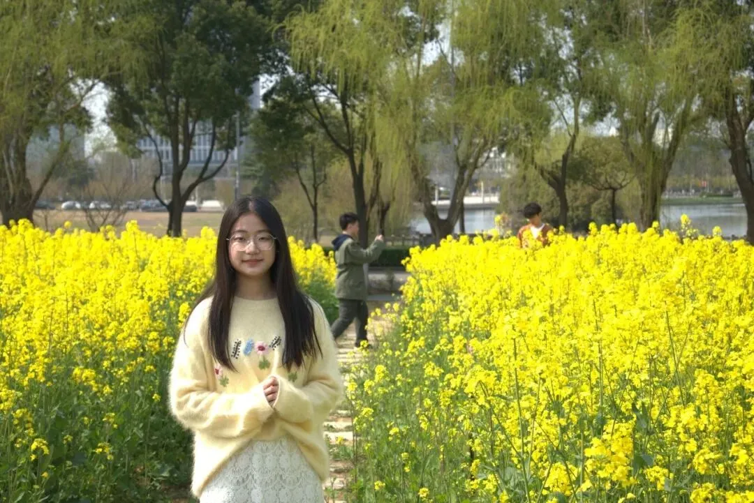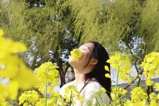 暖阳正好,同学们漫步花田,与这片金黄欣然相遇。有人轻闭双眼,将脸轻贴花丛,让清甜花香漫过鼻尖;有人捧起书本,静立花旁,让书页与花瓣随微风轻舞;有人舒展双臂,仰望澄澈蓝天,任阳光筛过花簇落下细碎光斑;有人撷取小花别在发间,对着镜头扬起笑脸,把青春模样定格在春光里。笑声与蜂鸣交织,快门声与风声相融,每一个瞬间都鲜活松弛、自然动人。