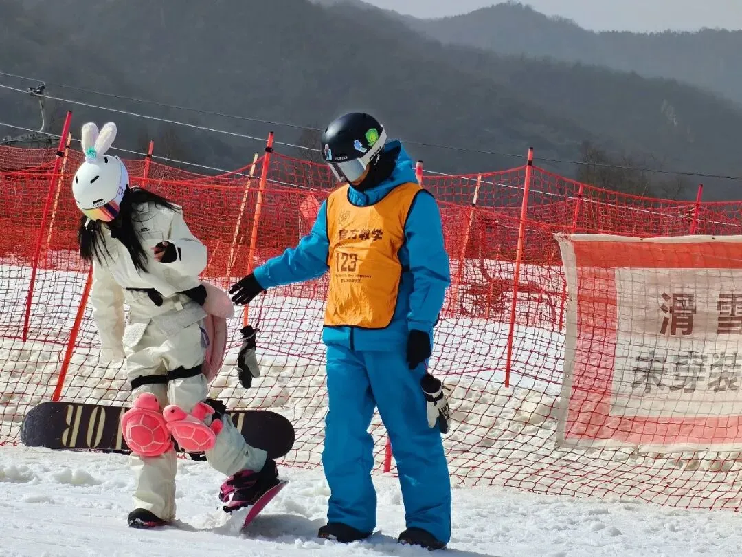 技能突破:2024级学生全面掌握单板滑雪刻滑与双板卡宾弯技术,2025级学生攻克单板换刃与双板平行转弯两大核心技能,全体学生均能在鳌山滑雪场高级道安全流畅滑行,展现出扎实的专业功底;