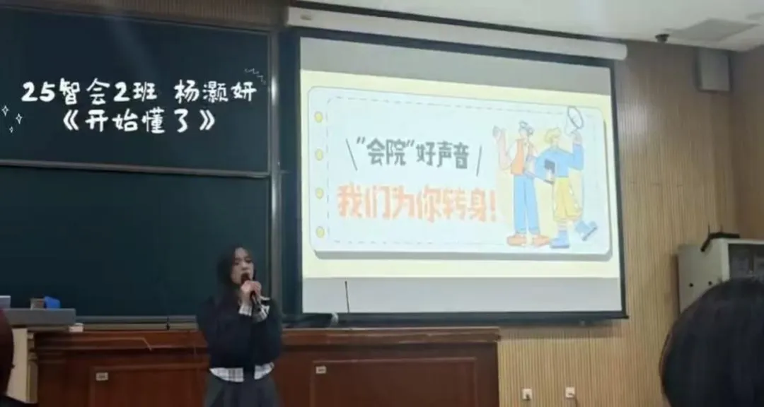25智能会计2班 杨灏妍(演唱歌曲:《开始懂了》)将心情藏于旋律,用温暖歌声传递真诚,她的演唱细腻动人,让听众在音符中感受青春的细腻情愫。