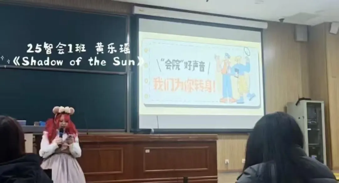 25智能会计1班 黄乐瑶(演唱歌曲:《shadow of a man》)大胆挑战特色曲风,用充满个性的演唱展现青春态度,让大家看到了会计学子的多元风采。
