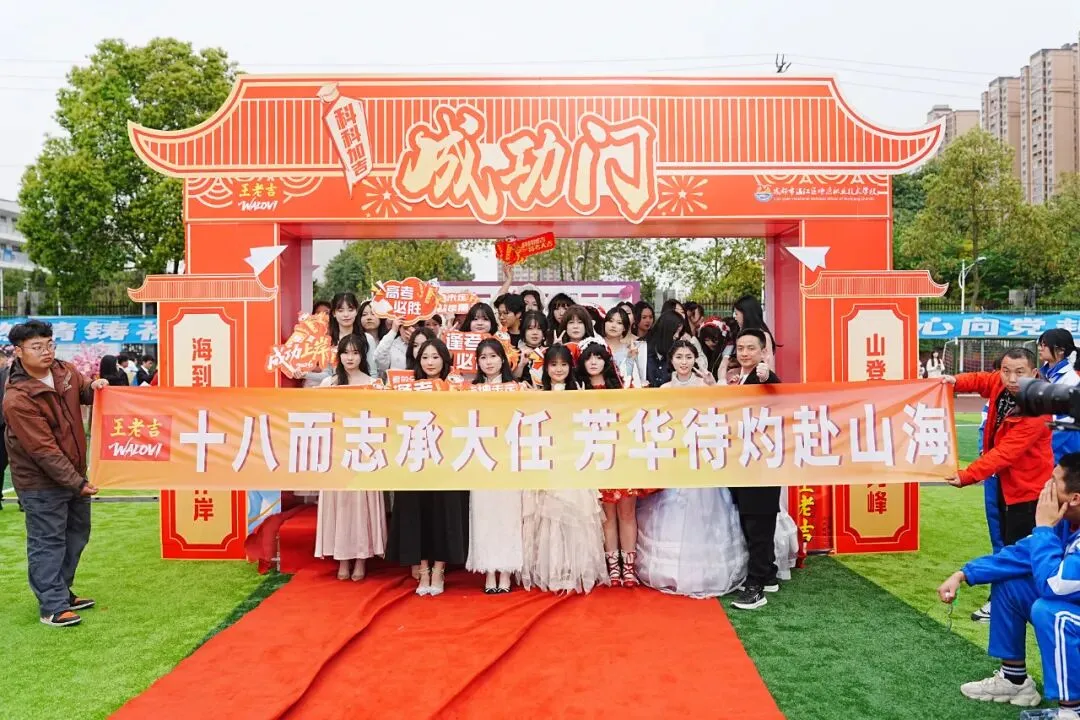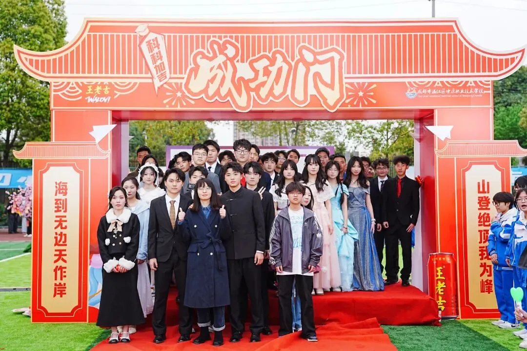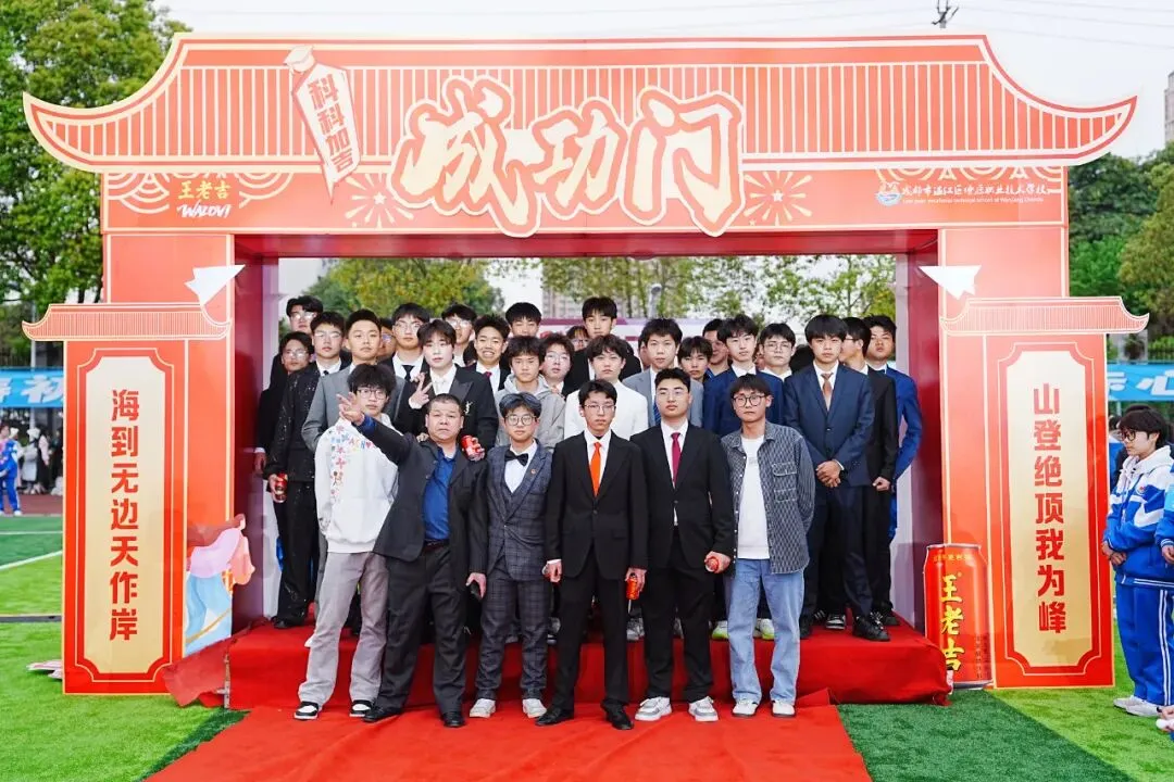 活动在庄重的成人礼入场仪式中拉开帷幕。伴着昂扬的乐曲,2026 届各班毕业生依次列队,踏着坚定的步伐走过红毯,昂首跨越象征着成年与责任的成人门,在镜头前定格班级青春合影。现场同步播放的各班毕业纪念视频,一帧帧画面回溯了三年校园时光的成长与蜕变,将青春的热忱、同窗的情谊与对母校的不舍娓娓道来。