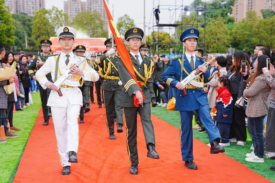 随后,庄严的升旗仪式正式举行。全体人员肃立致敬,五星红旗在雄壮的国歌声中冉冉升起,家国情怀的种子在每一位毕业生心中深深扎根,也为这场青春盛典铺就了最鲜亮的精神底色。