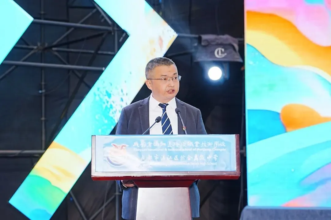 学校党委书记车平同志为活动致辞,向圆满完成学业的全体 2026 届毕业生致以最热烈的祝贺,向辛勤耕耘的全体教师、鼎力支持的家长朋友们致以诚挚的感谢。他回望了同学们三年来在理实一体化课堂中锤炼本领、在技能赛场中奋勇争先、在社会实践中涵养担当的成长历程,更以三句临别赠言寄语全体毕业生:要做坚持独立思考的人,在众声喧哗中守住内心的罗盘;做聆听心灵回响的人,在尘世喧嚣中坚守初心与热爱;做敢于躬身入局的人,在时代浪潮中以行动奔赴理想。