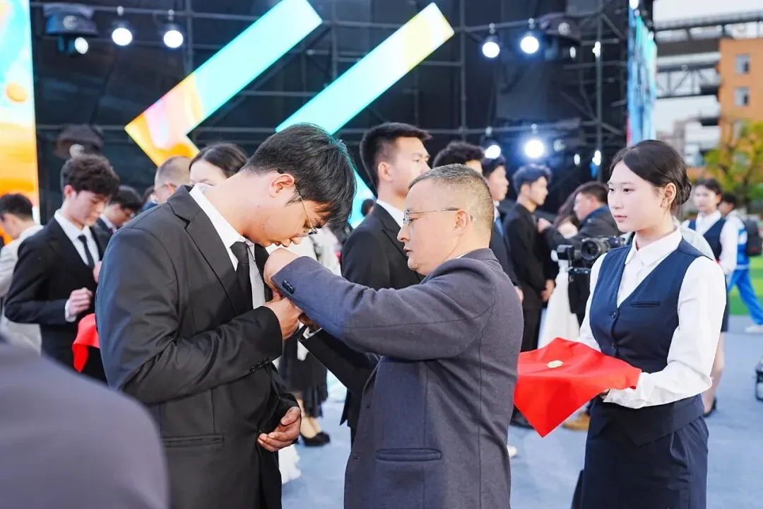 一枚毕业徽章,镌刻青春印记,承载燎原初心。仪式现场,学校领导、老师们为全体毕业生佩戴毕业徽章,完成这场属于青春的郑重加冕。