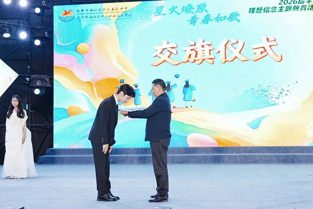 旗帜交接,精神永续。活动现场举行了庄重的校旗传承仪式,学校副校长王建昌同志将校旗郑重交至高二年级学生代表手中。一面校旗,承载着燎原学校数十年的办学初心与精神内核;旗帜的交接,是 “星星之火,可以燎原” 精神的代代相传,更是青年学子理想与担当的接续传递。