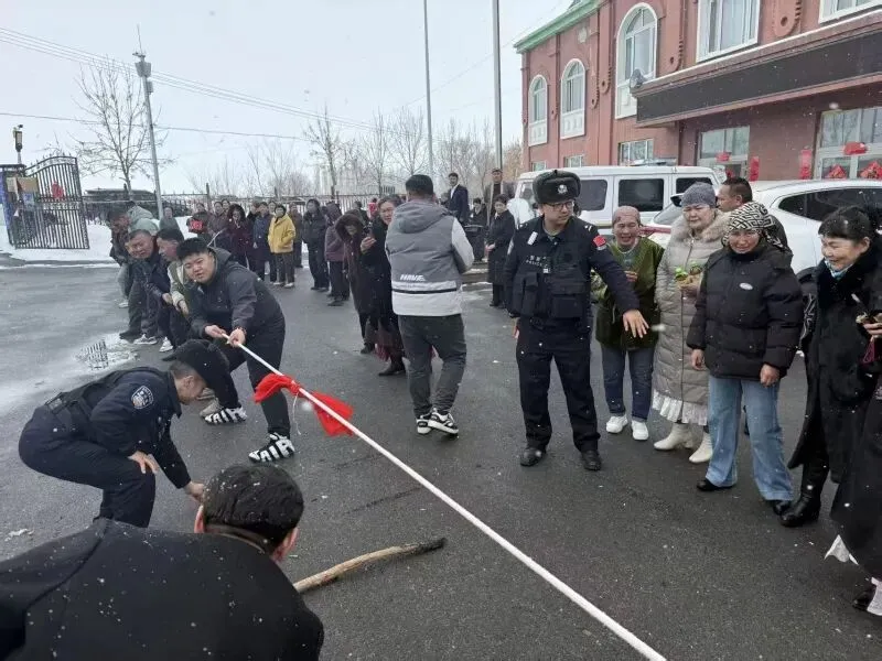 活动最后,警民共同簇拥在党旗与国旗下合影留念,鲜艳的旗帜在雪原上熠熠生辉,幸福的笑容绽放在每个人脸上,定格下警民鱼水情深、民族团结同心的动人瞬间。