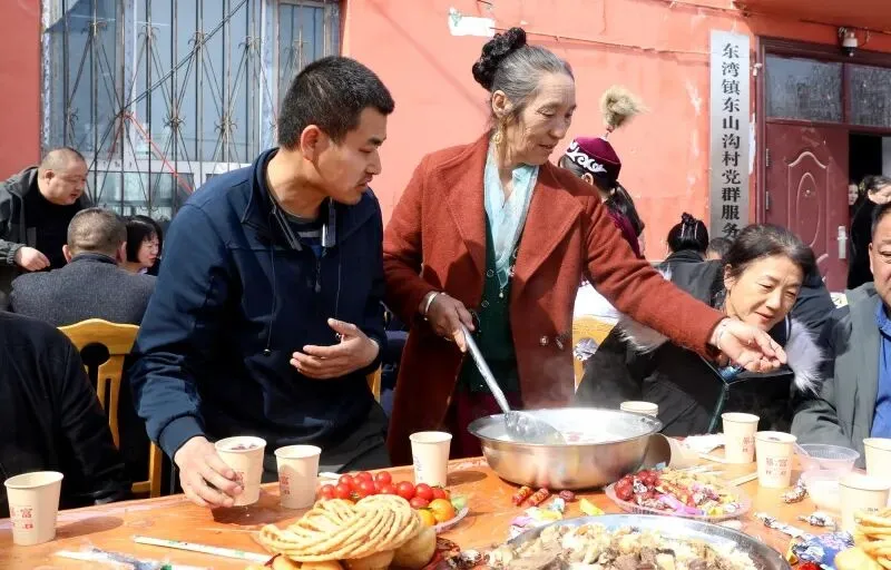活动当天,东山沟村的热心村民在村委会搭起炉灶、支上大锅、清洗食材,为左邻右舍的朋友准备丰盛的民族团结美食。