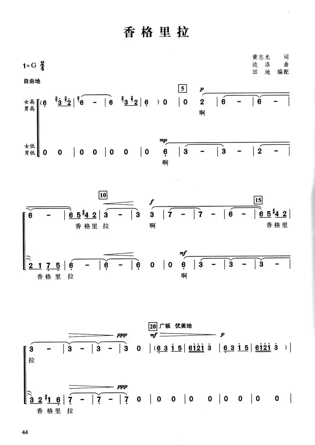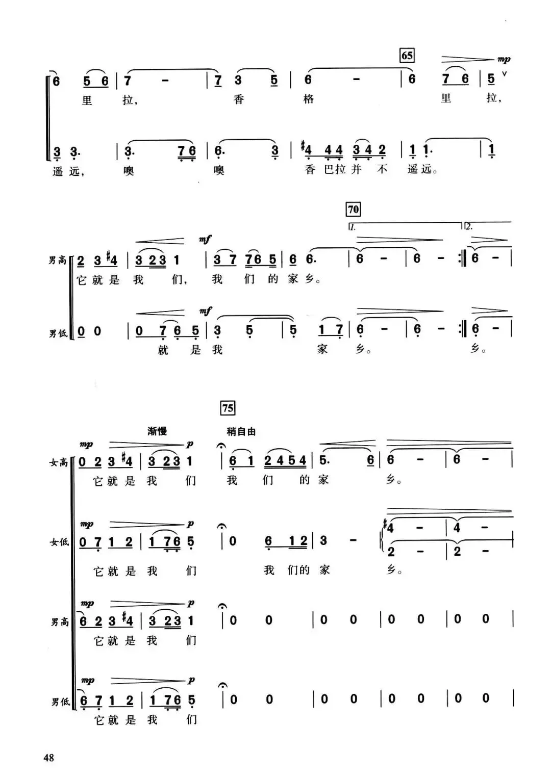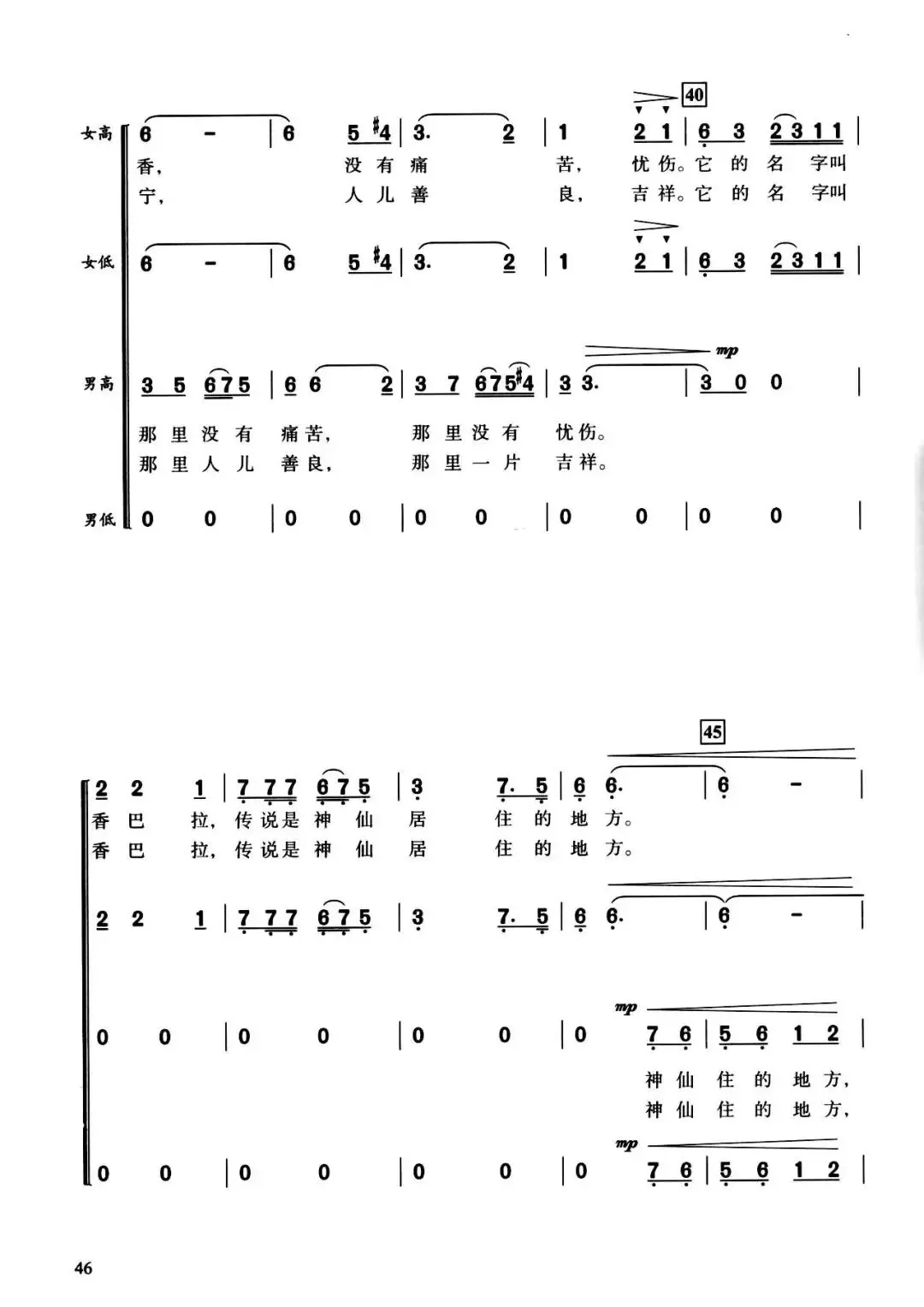 今天,马老师应粉丝要求,给大家练唱的是混声合唱歌曲《香格里拉》。这期是男低声部的歌谱和歌词练唱,欢迎大家转发分享给喜欢这首歌曲的朋友们。请大家关注“一起来唱歌谱”平台,平台将持续给大家带来好听的歌曲以及练唱。