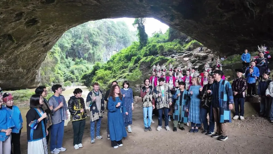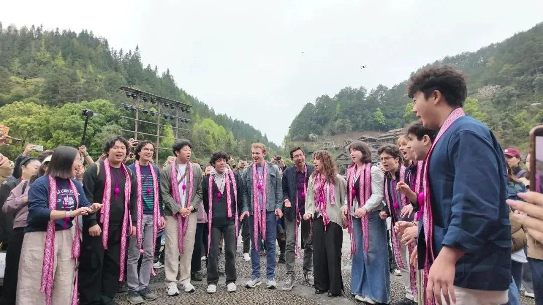 春分时节的黔东南,万物复苏,歌声飞扬。3月23日至24日,美国耶鲁大学Whiffenpoofs阿卡贝拉合唱团一行走进黎平肇兴侗寨,与当地侗族大歌传承者、民间歌手及各族人民开展“大鸾和鸣,天地交响”主题文化交流活动。这是积极响应习近平总书记“5年邀请5万名美国青少年来华交流学习”重大倡议的生动实践,也是中美两国青年以歌声为媒、以文化为桥,共谱友谊新篇的美丽邂逅。