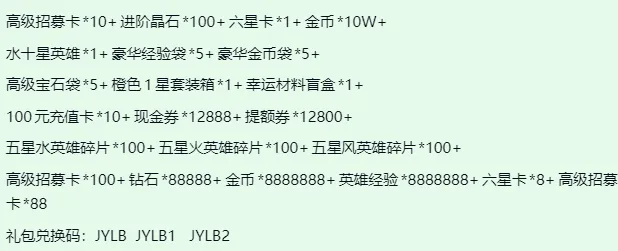 兑换码:JYLB JYLB1 JYLB2