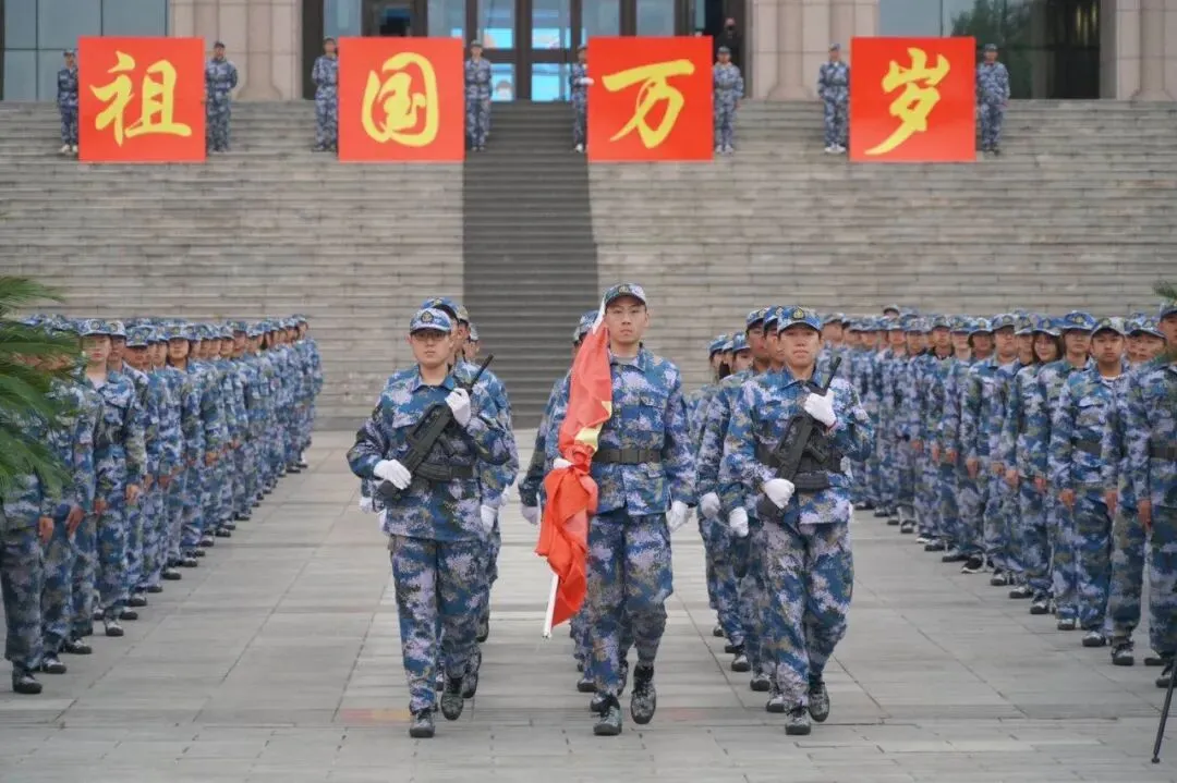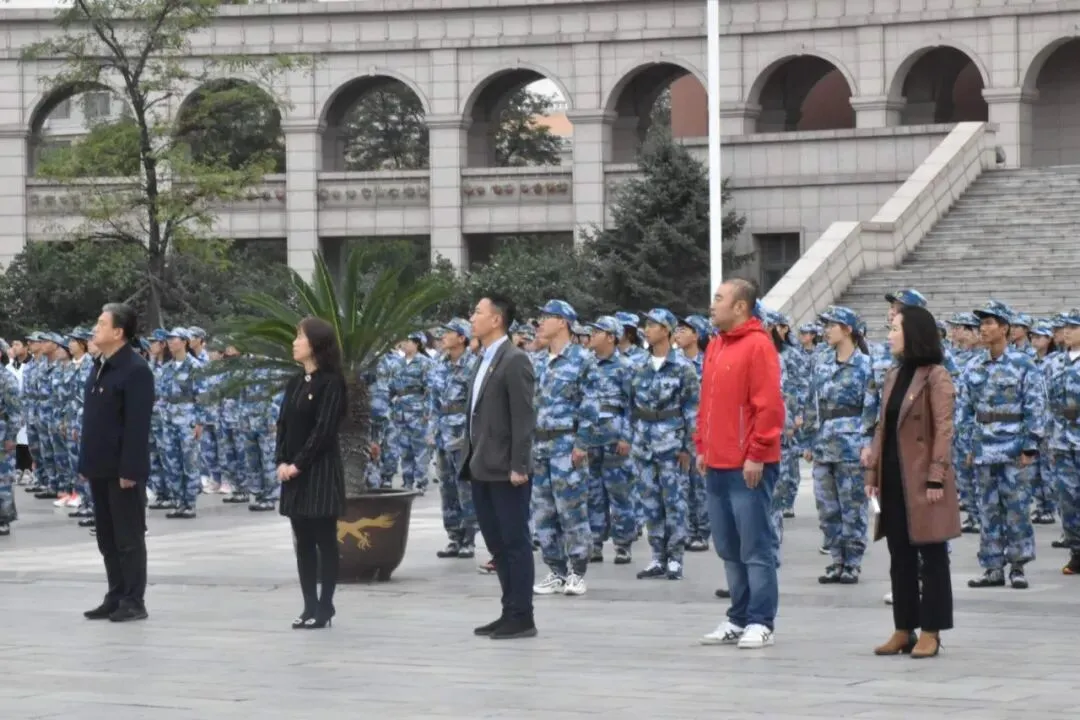 全体师生在《今天是你的生日我的中国》的歌声中完成入场。