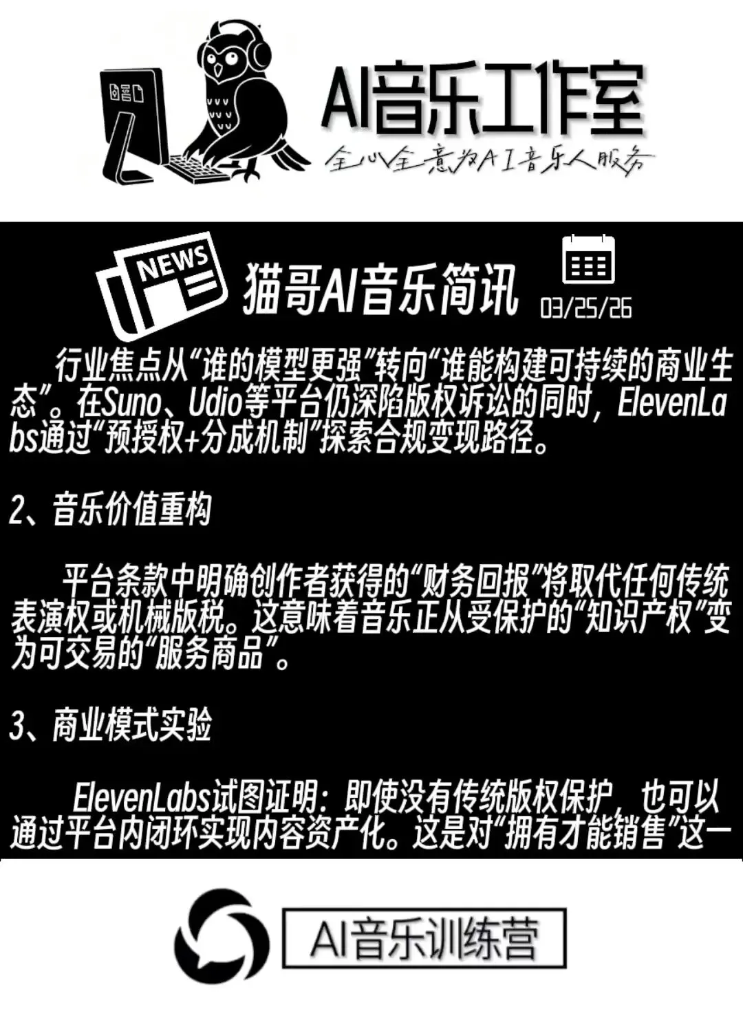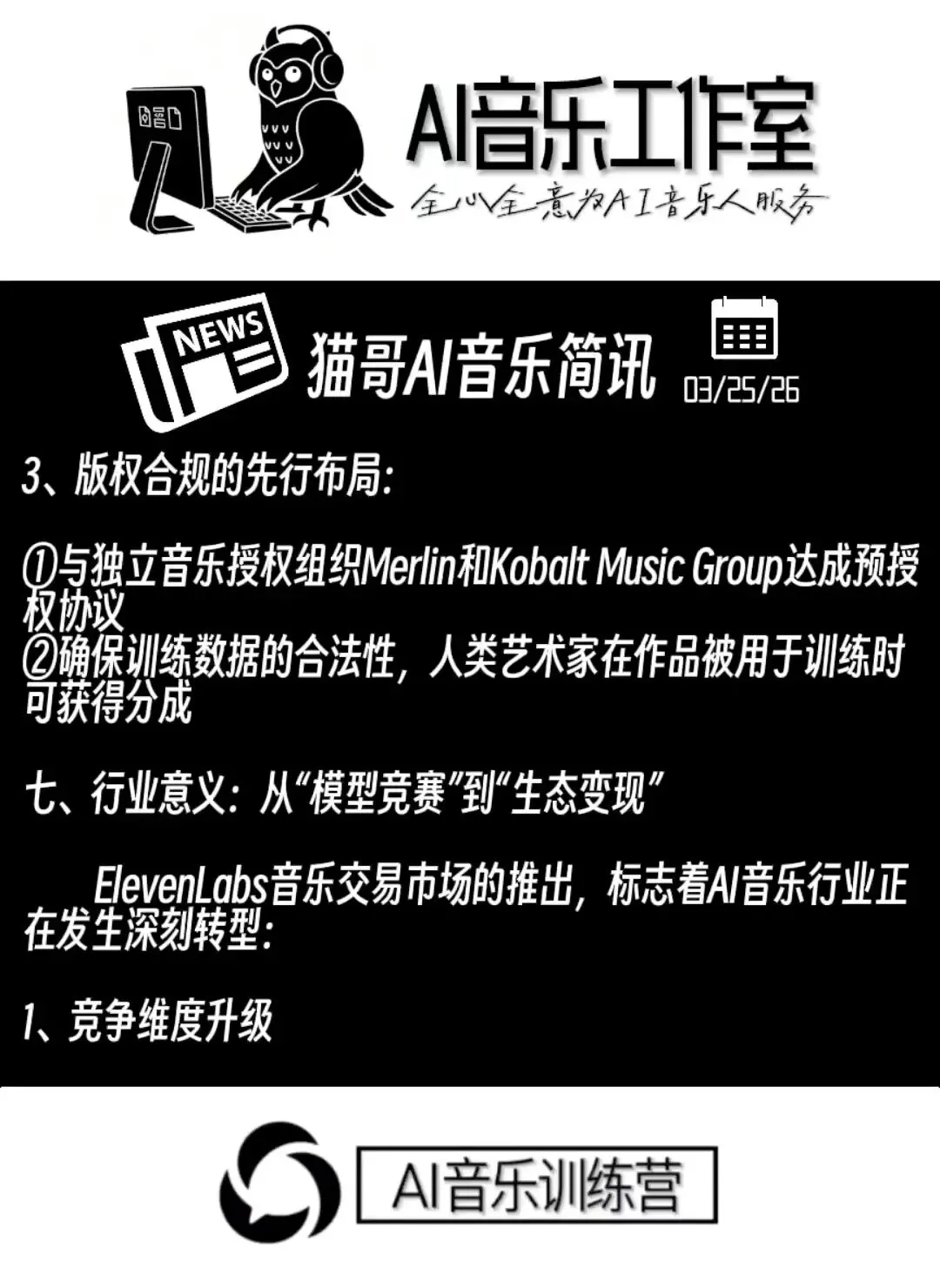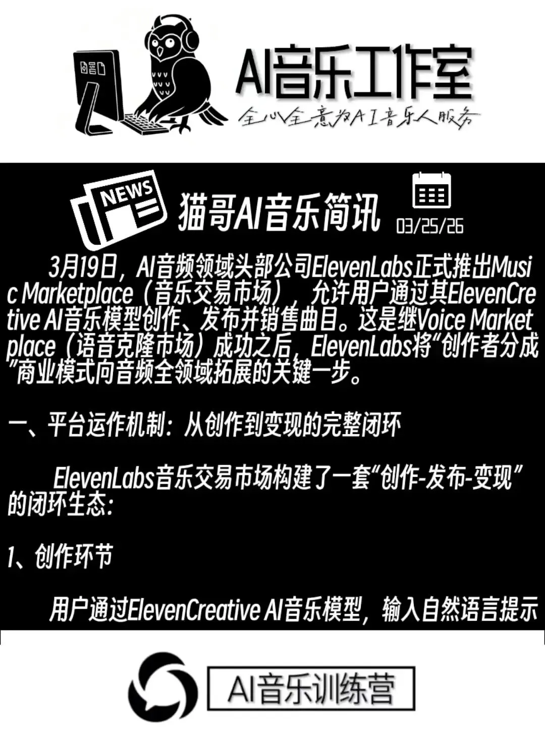 ElevenLabs音乐交易市场的推出,标志着AI音乐行业正在发生深刻转型: